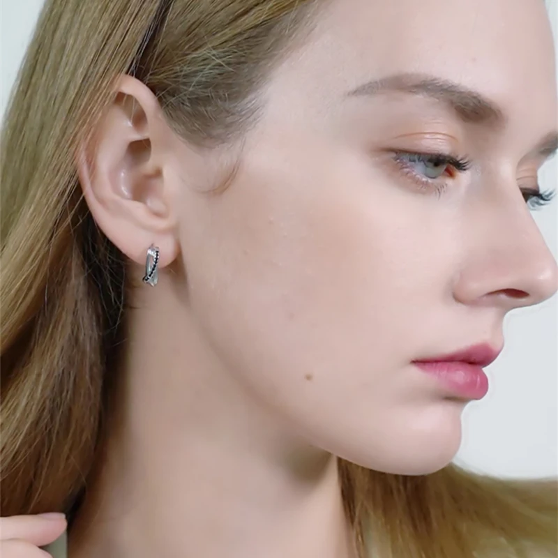 Серьги-кольца женские серебряного цвета с черной шпинелью, I023