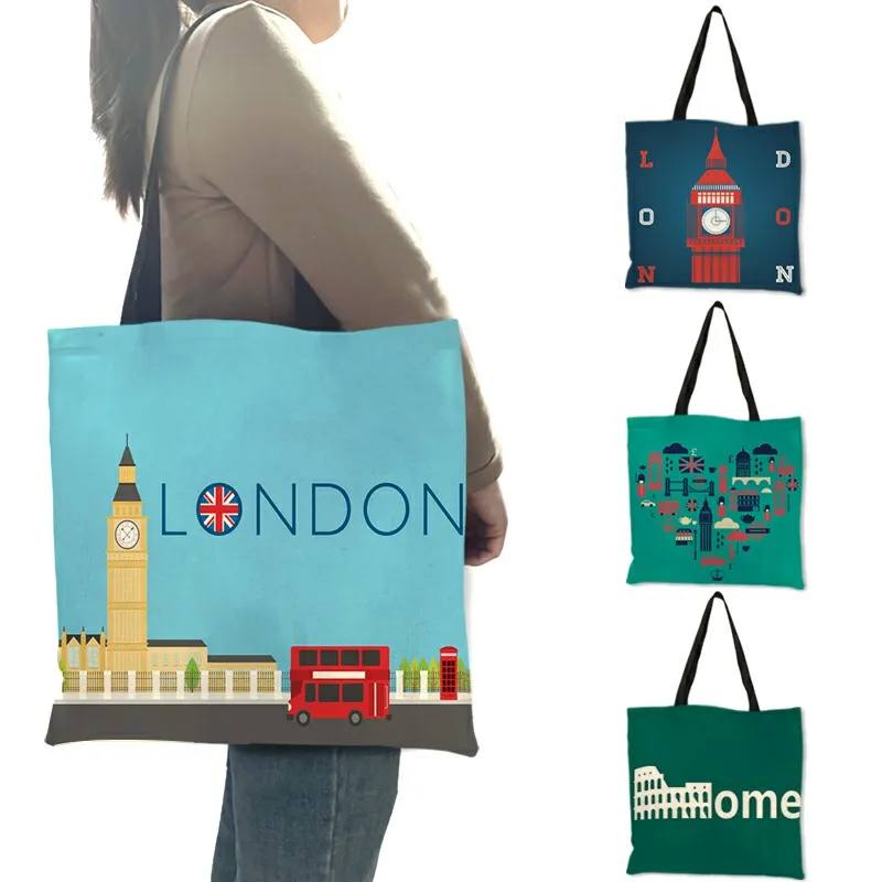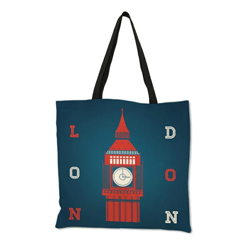 Высококачественная Льняная сумка через плечо London Big Ben Tower, римская Сумка-тоут с принтом, модная женская Повседневная пляжная сумка для покупок, сумки