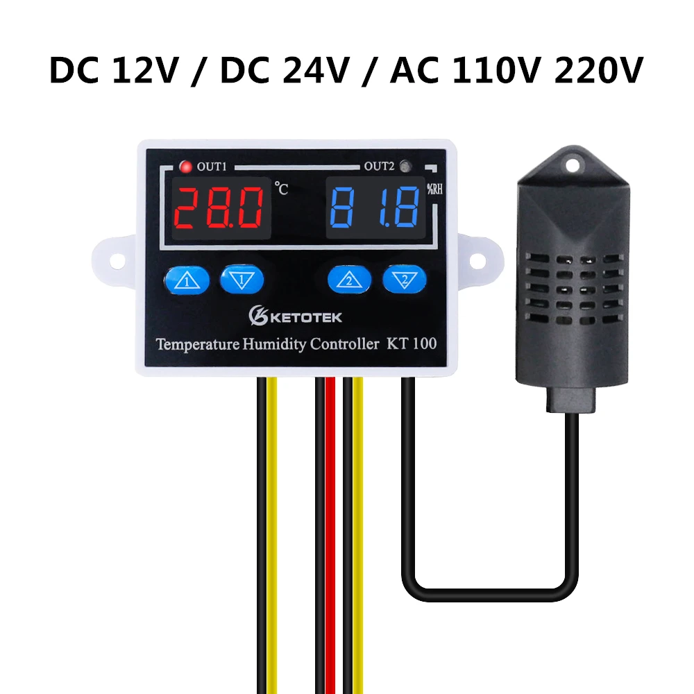 Цифровой регулятор температуры и влажности KT100 STC-3028, термостат для холодильника, гигростат 110 В, 220 В, 12 В, 10 А, гигрометр