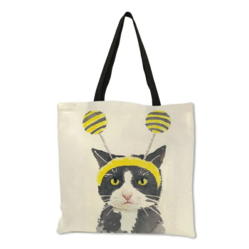 Сумка для покупок B13027 с милым принтом кота и чернилами, женские ...