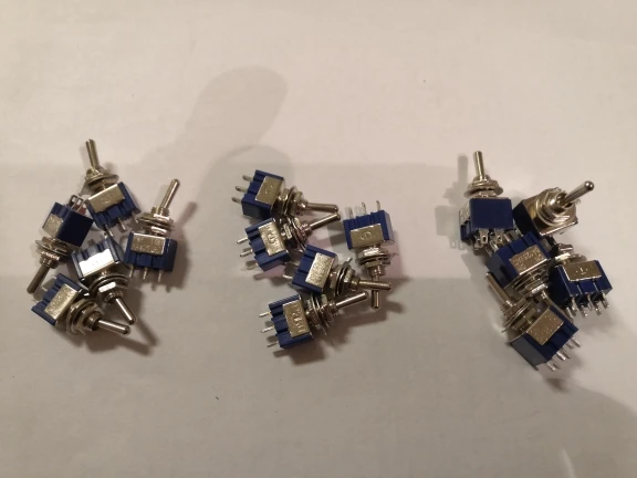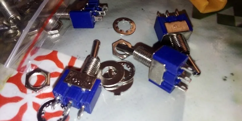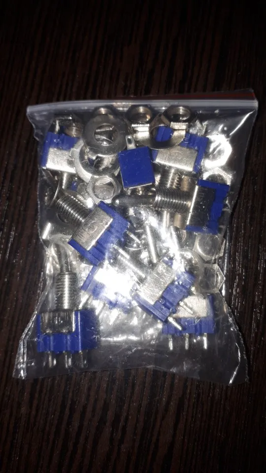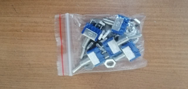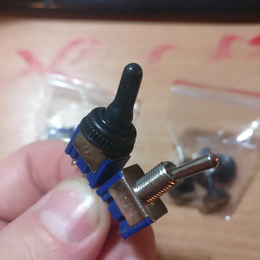 Аккуратные мелкие переключатели на два положения. Все шайбы - гайки в комплекте. Перключение достаточно мягкое и без хруста внутри. Быстрая отправка и доставка - до Москвы за 18 дней, с учетом того, что доставка пришлась на Новый год. Продавцу спасибо!