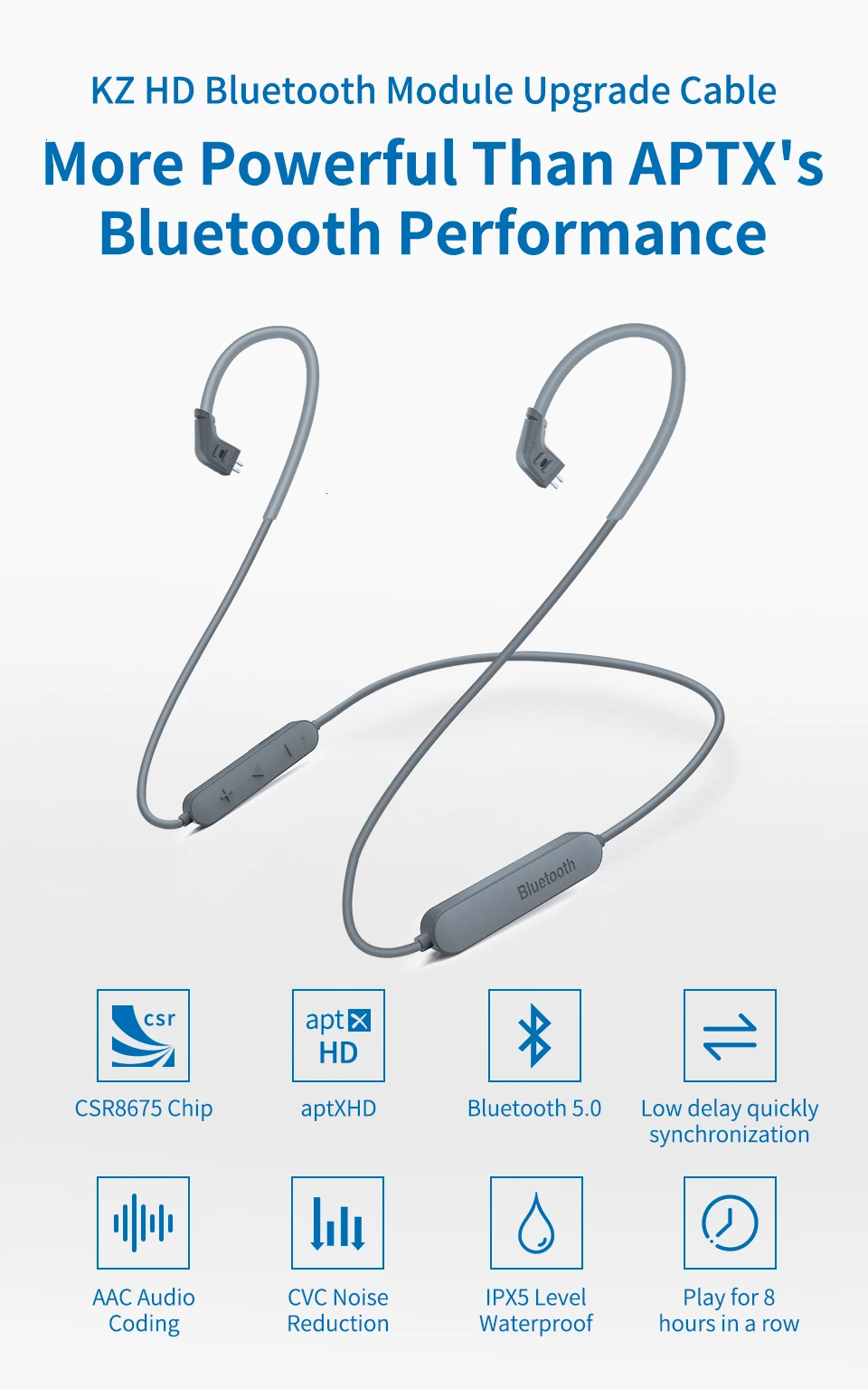 Беспроводной Bluetooth-кабель AK KZ 5,0 APTX HD, улучшенная версия с 2PIN для KZ ZS10ZSTAS06AS10AS16ZSN Pro ZSX