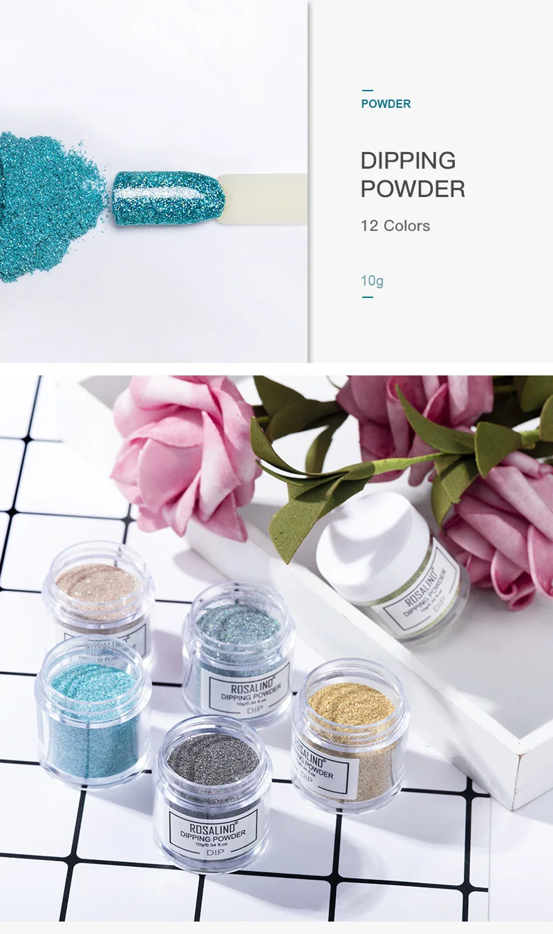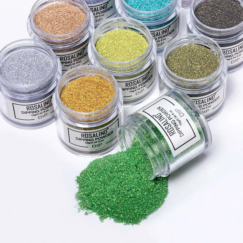 Пудра для дизайна ногтей ROSALIND Dip, голографический Лак Блеск, градиентный Сияющий хромовый пигмент, пудра для окунания, набор хлопьев, блестки