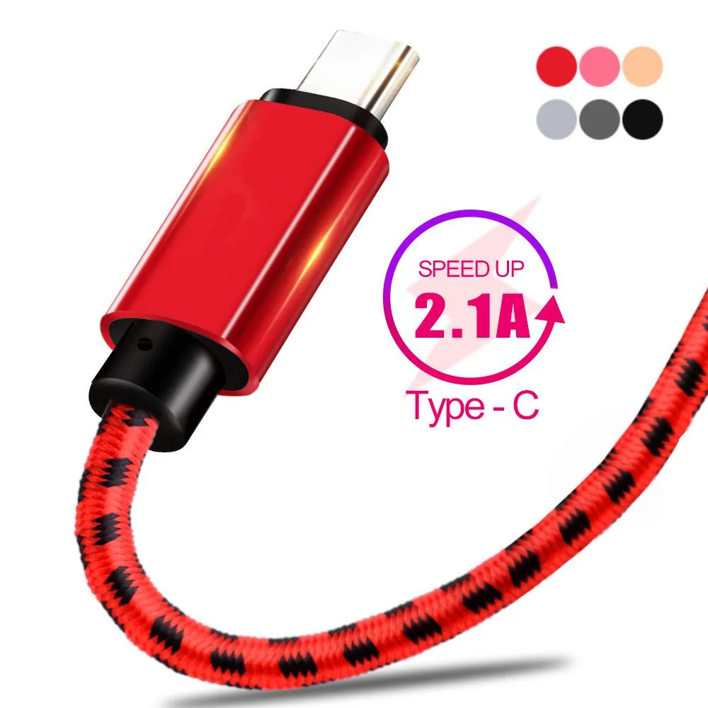 USB C для Samsung Galaxy Tab S10 A51 Note 10 20 OnePlus 7 9r Honor 20 9 2.1A быстрое зарядное устройство 3 м нейлоновый шнур USB Type C кабель для передачи данных