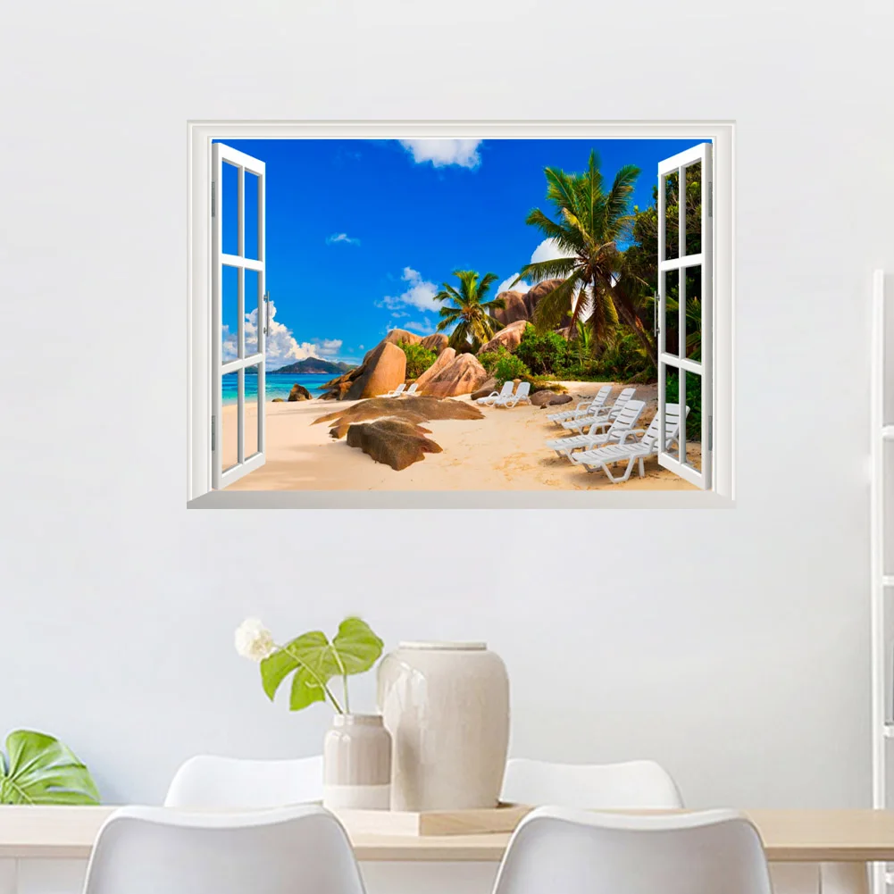Окно природа пейзаж яркие рваные стены Стикеры домашний декор Гостиная Спальня настенные наклейки с росписью стены искусства плакат