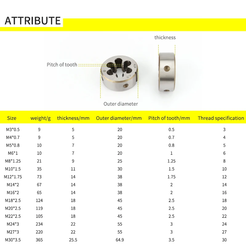 Легированная сталь 1 шт. жесткий круглый штамп резьбовой кран метрический мини-штамп M3 M4 M5 M6 M8 M10 M12 M14 M16 M18 M20 M27 M30