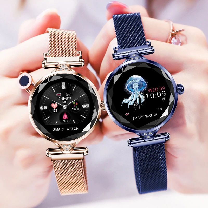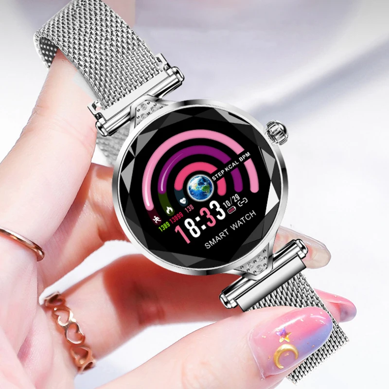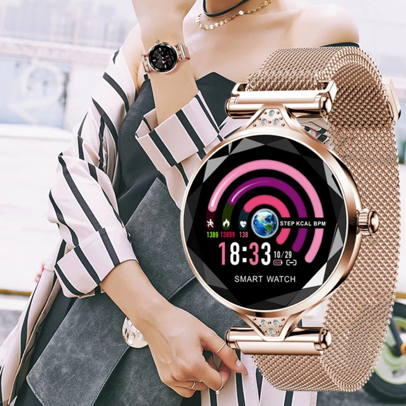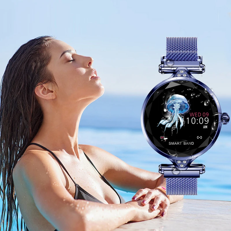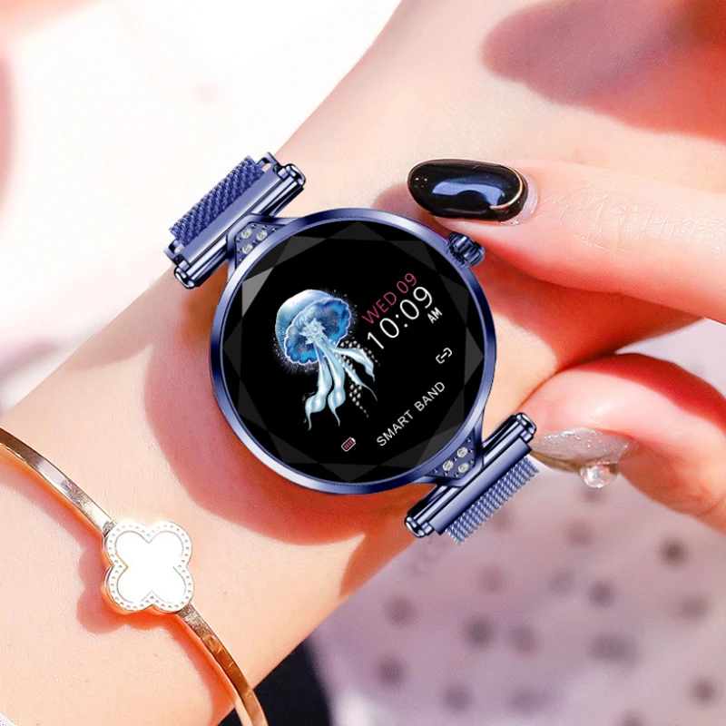 Женские часы с цветным экраном, Женский умный Браслет, пульсометр, кровяное давление, спортивный мониторинг, магнитный ремешок из нержавеющей стали