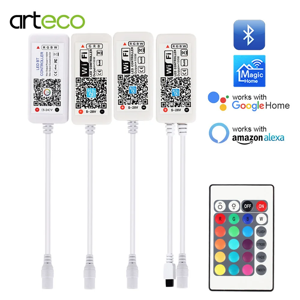 Светодиодная лента, 5 В, 12 В, 24 В, BluetoothWi-Fi, RGBRGBWконтроллер RGBWW, Android, IOS, поддержка Alexa, Google, Magic Home, ИК-управление
