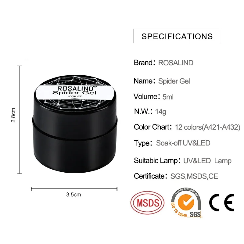 Гель-паук ROSALIND для дизайна ногтей, 5 мл, «сделай сам», «точечный к линии», рисование и живопись, украшение, тянущийся Шелковый гель-паук