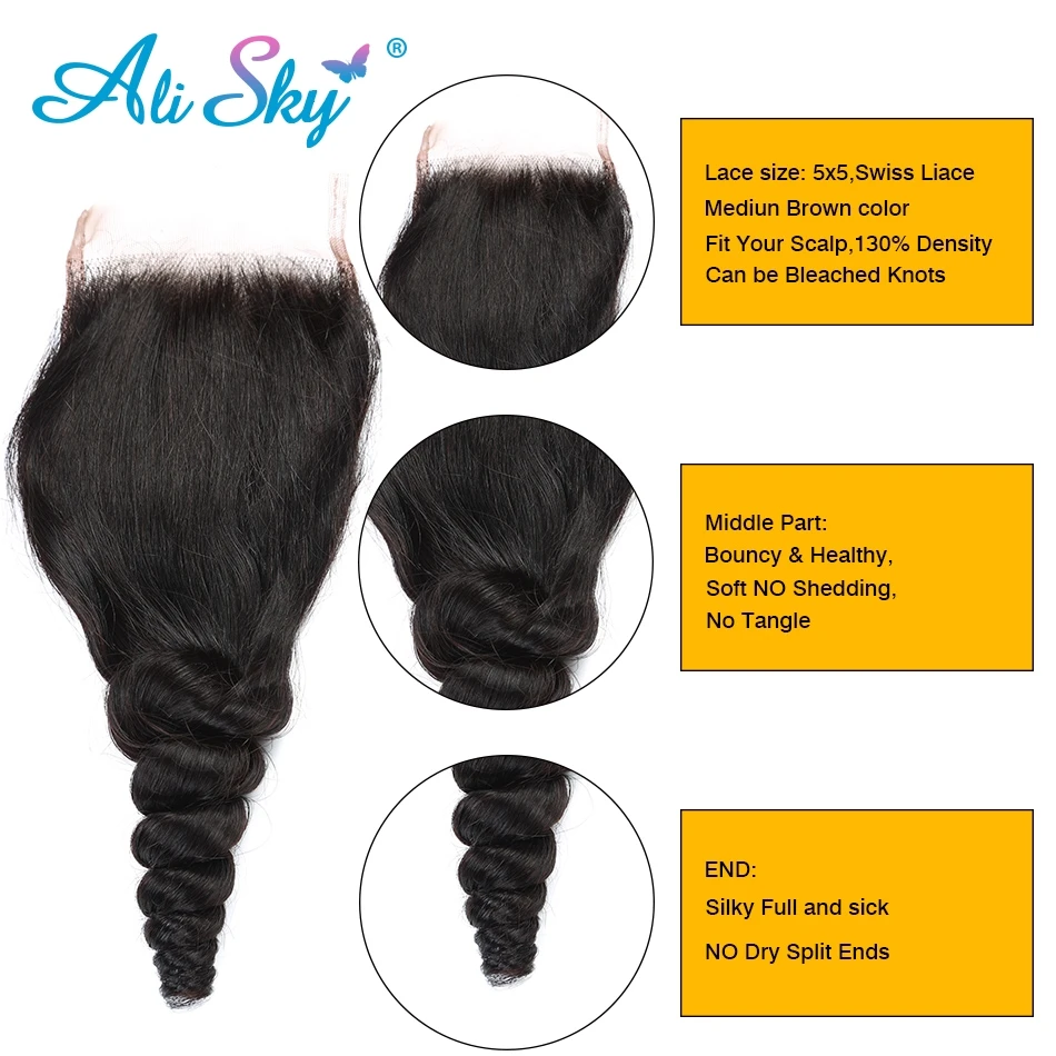 Ali Sky бразильская свободная волнистая застежка 5x5 кружевная застежка Реми волосы Фронтальная застежка 100% человеческие волосы застежка натуральные волосы 5x5