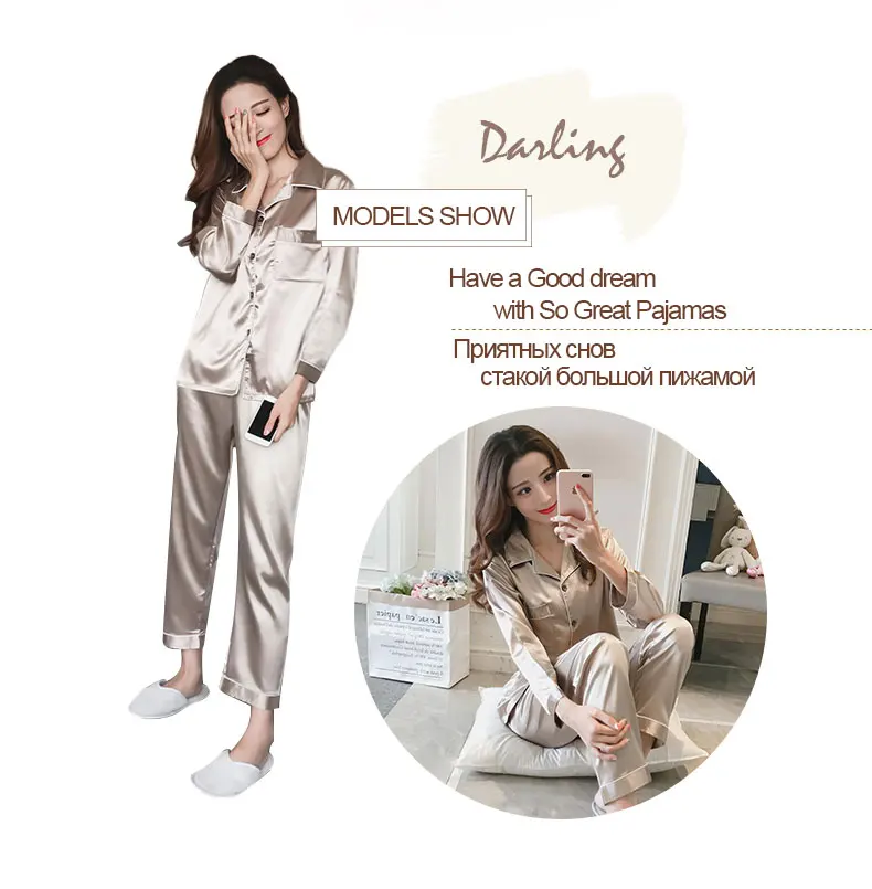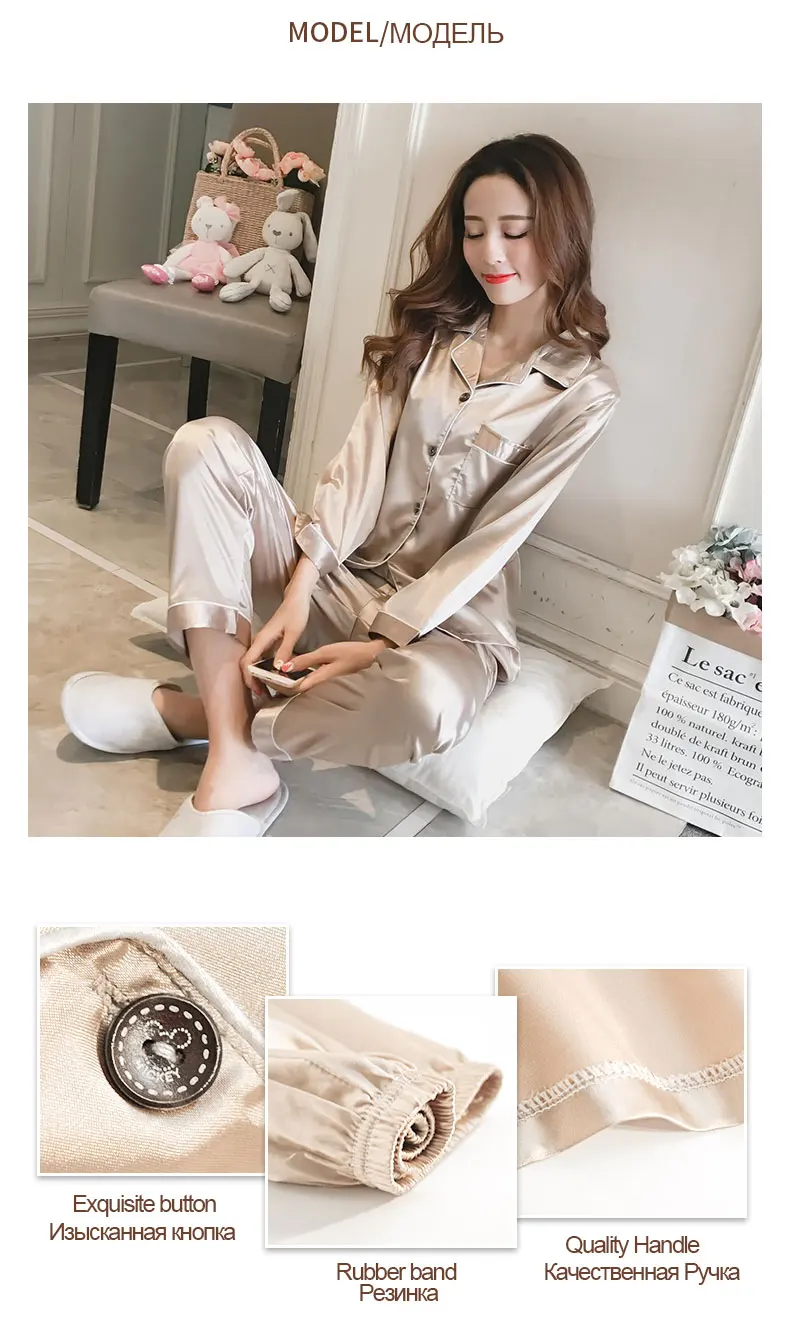Женские пижамные комплекты из искусственного шелка, атласная пижама, одежда для сна с длиннымкоротким рукавом, модные пижамы большого размера для девочек, пижамы, новинка 2021