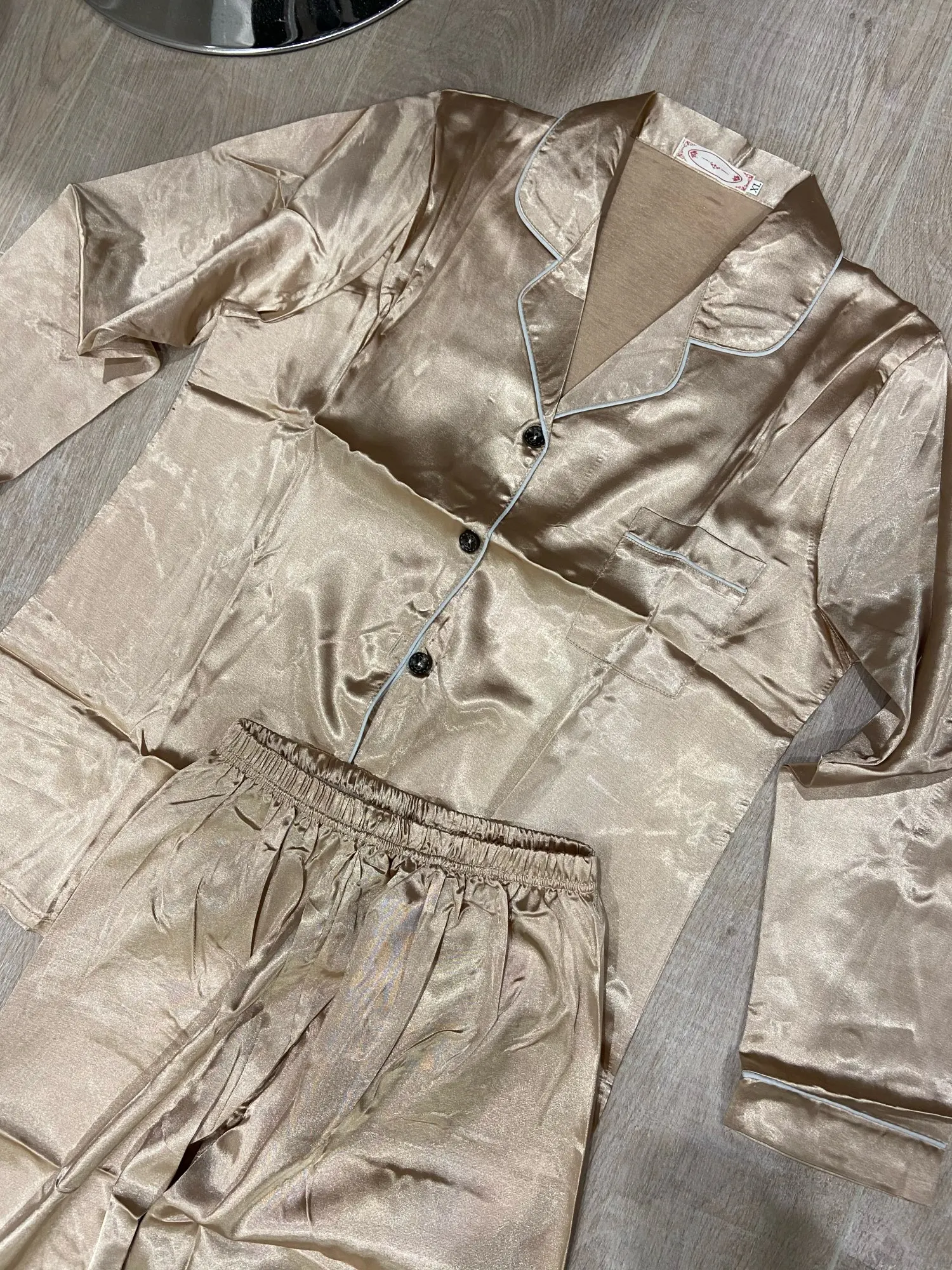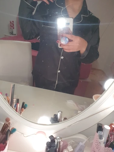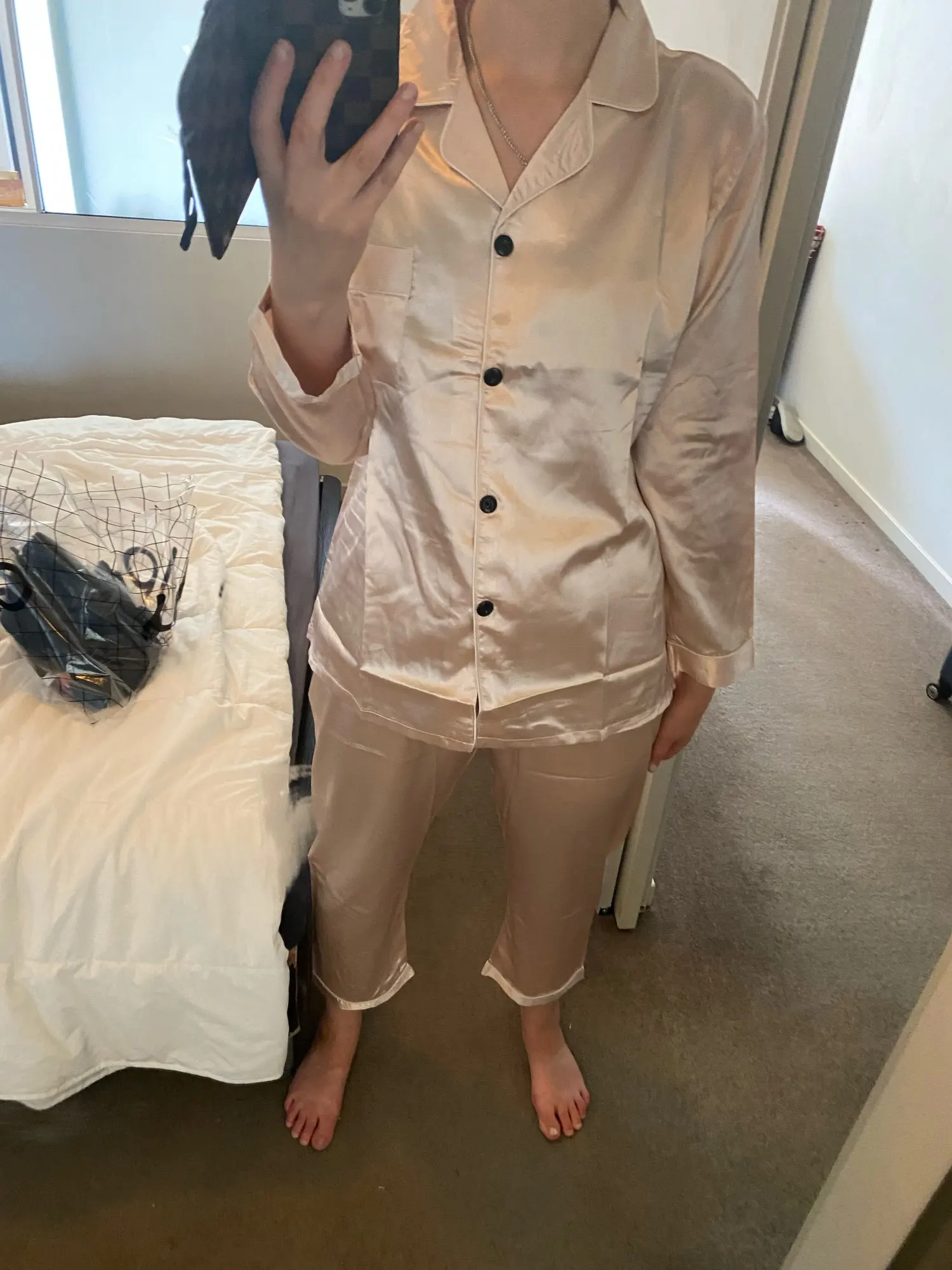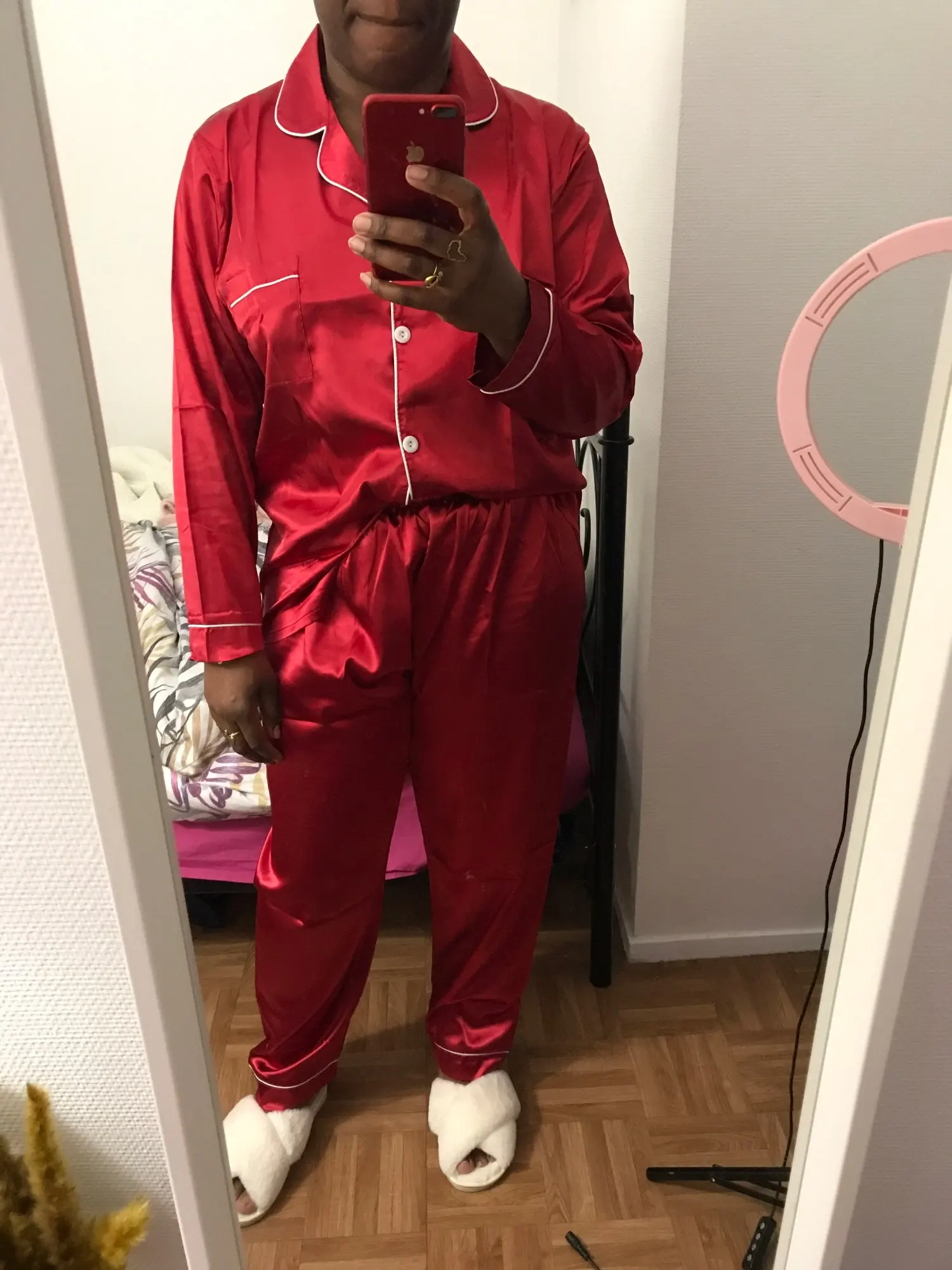 Красивая пижама.Всё ровно. Синтетика. Прилипает к телу. Спать нет, а по дому пофорсить норм. Заказала XXL на параметры 90/70/100. Российский мой где то 46 размер. Можно было на размер меньше. Рубашка очень свободно. На фото не так это заметно.