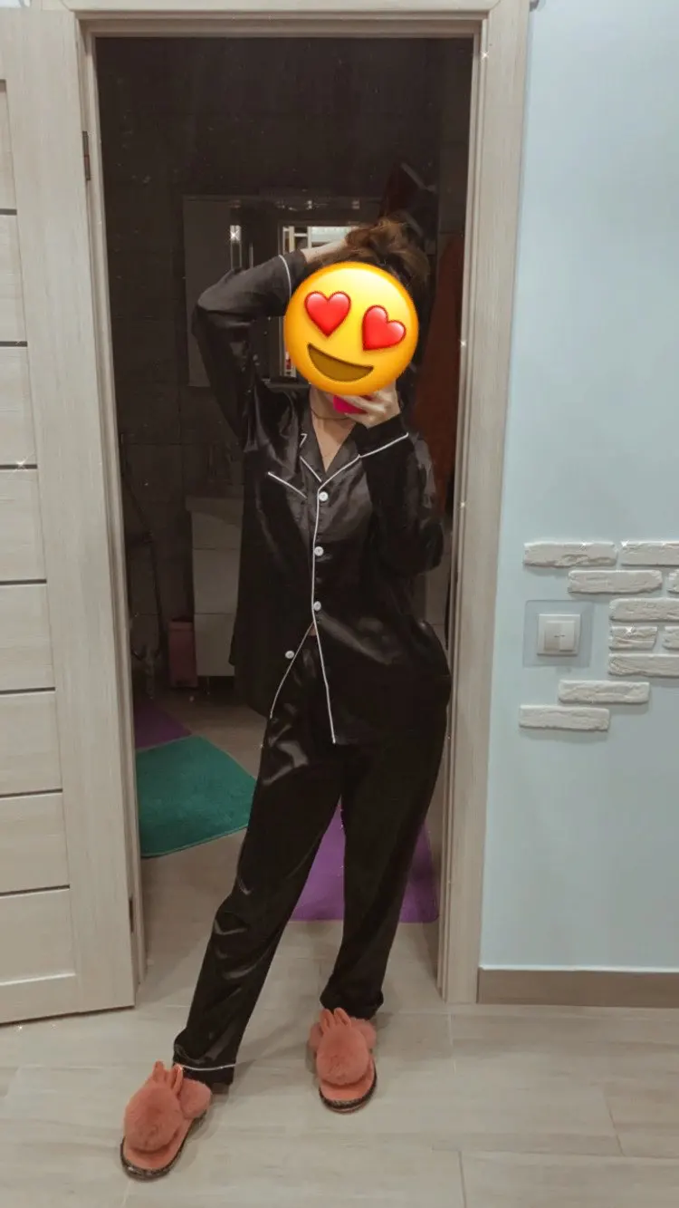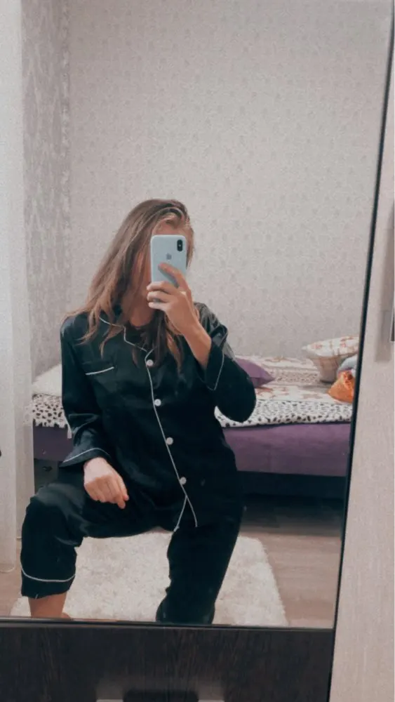 Очень крутая пижама. Я в восторге. Заказ дошёл за 3 недели, трек отслеживался. По размеру всё отлично (заведомо брала на размер больше). Длина штанов отличная, не коротки. Я очень довольна. Легкий запах есть, но после стирки уйдёт. Швы все ровные, сшито очень хорошо и аккуратно.