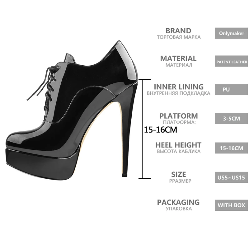 Женские ботильоны на платформе Onlymaker, черные, красные пикантные ботинки на высоком каблуке-шпильке из лакированной кожи со шнуровкой, модные пикантные ботинки