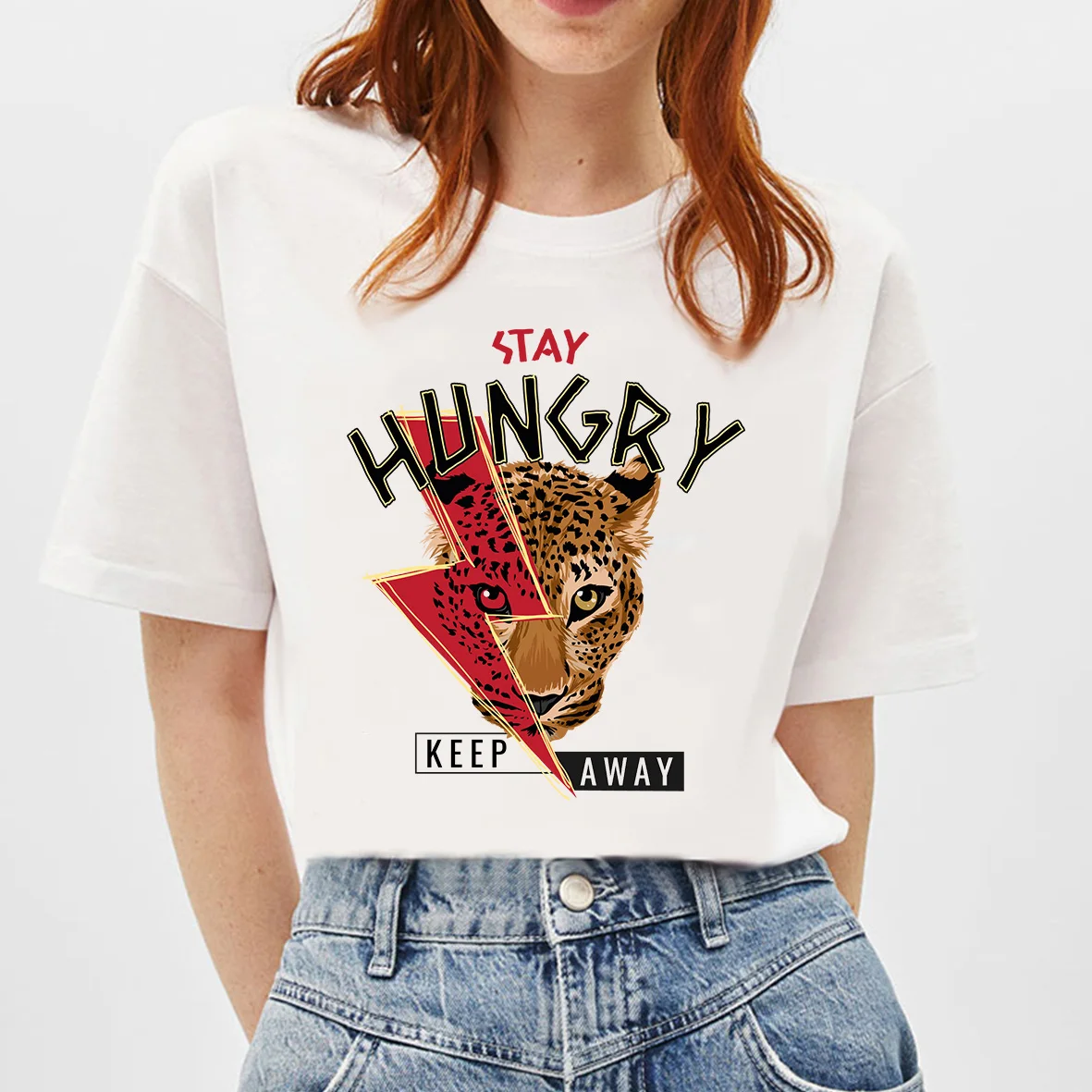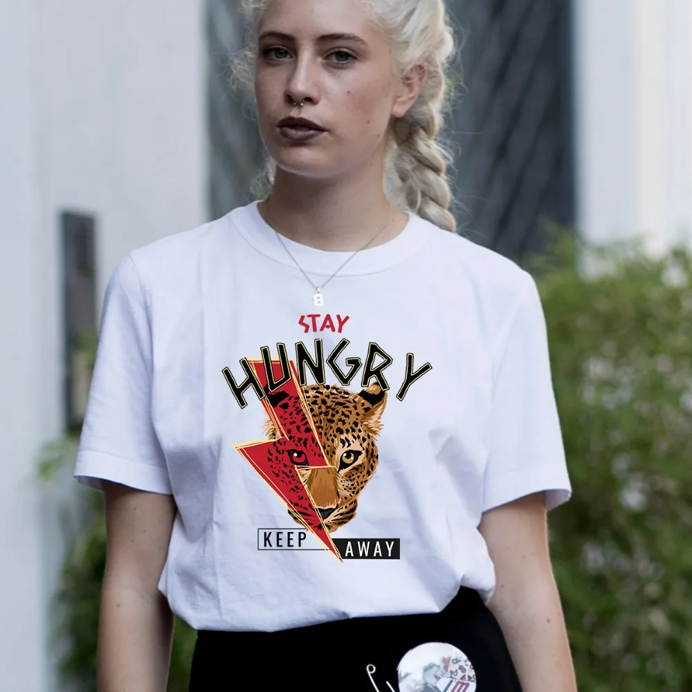 BLINGPAW оставайтесь голодными футболка с леопардовым принтом Эстетическая Аниме Дизайн Женский Графический Топы И Футболки Для Женщин Белые хлопковые повседневные футболки Femme