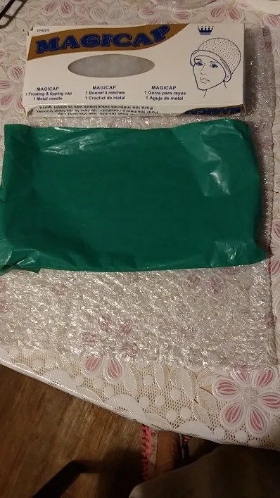 Спасибо продавцу, пришел заказ быстро. Упаковано очень качественно. Комплект состоит из шапочки и крючка. Шапочка из плотного силикона. Пока не использовала. Отверстия делать надо самой, что очень удобно, т.к. могу регулировать количество прядей.