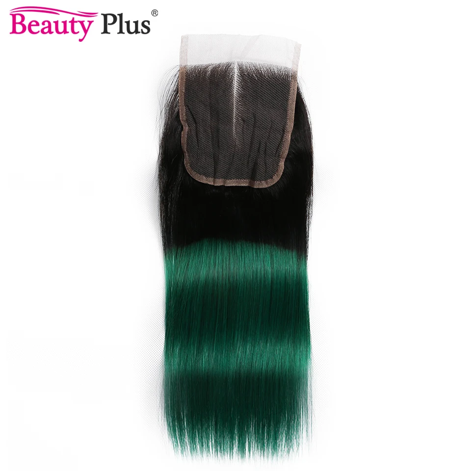 Бирюзовые зеленые пряди с закрытием Омбре человеческие волосы 3 пряди с закрытием Remy бразильские прямые волосы плетение и 4x4 кружева закрытие