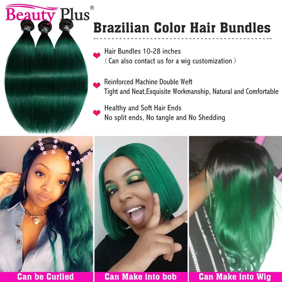 Бирюзовые зеленые пучки с застежкой, человеческие волосы с эффектом омбре, 3 пряди с застежкой, бразильские прямые волосы Remy, волнистые волосы 4 х4