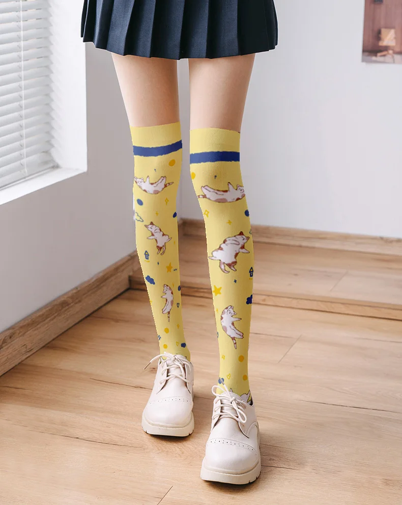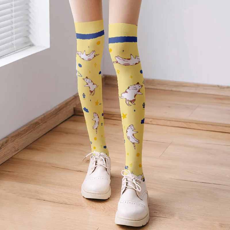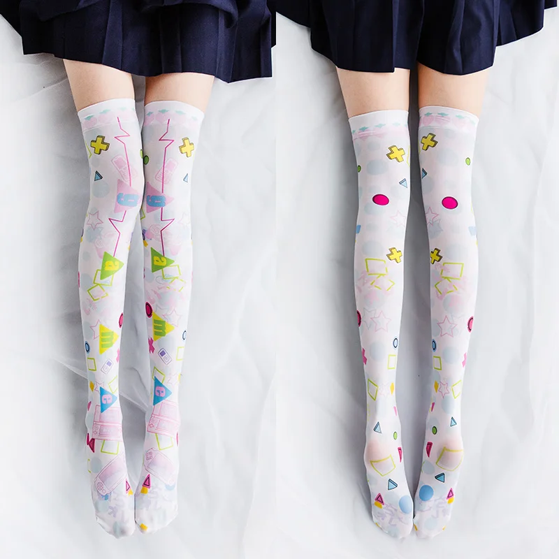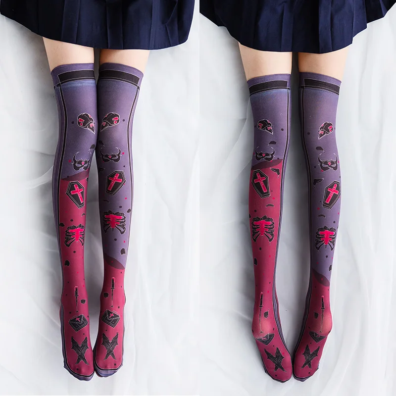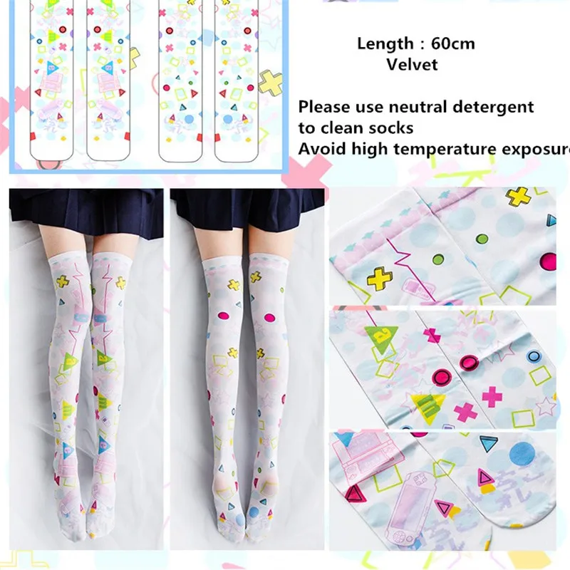 Чулки выше колена для женщин и девушек, чулки до бедра с 3D принтом, милые тонкие бриллиантовые чулки для женщин