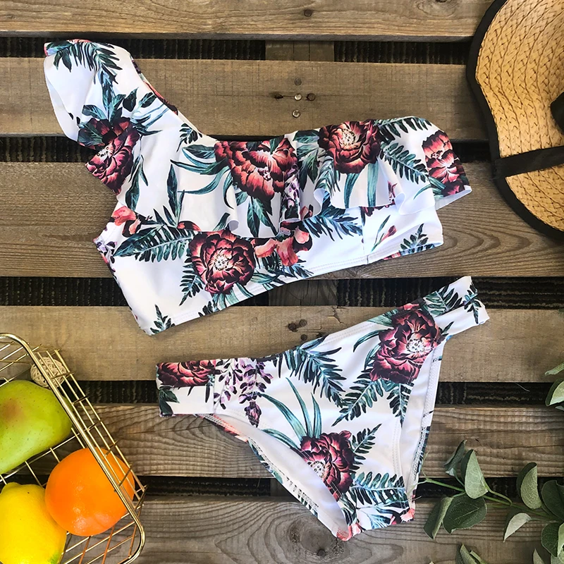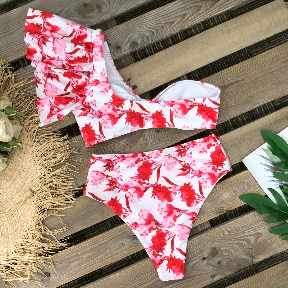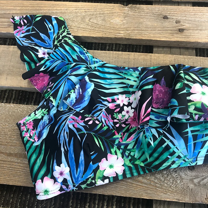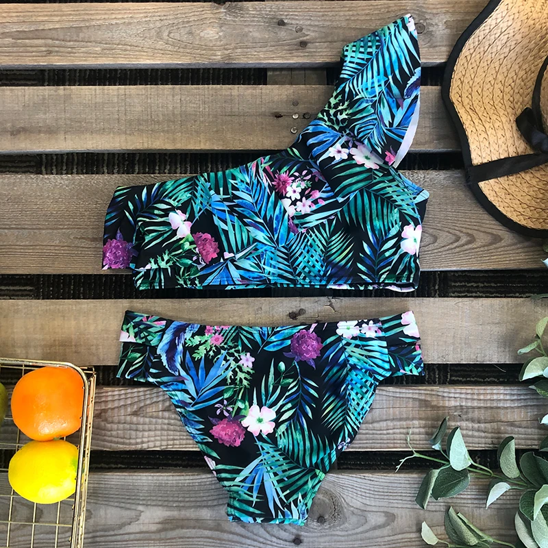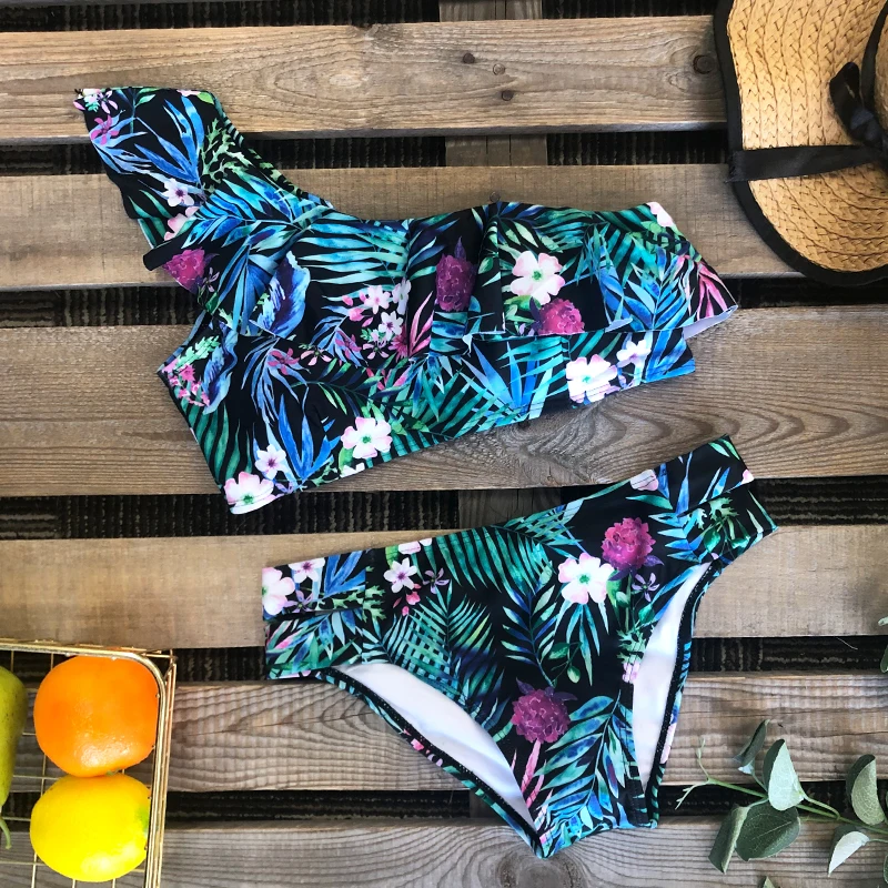 Женский комплект бикини пуш-ап Бразильское бикини Тройная оборка бикини на бретельках Купальник бандо бикини купальный костюм