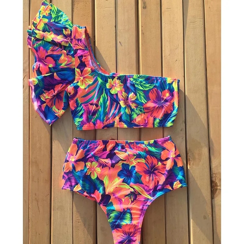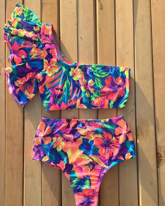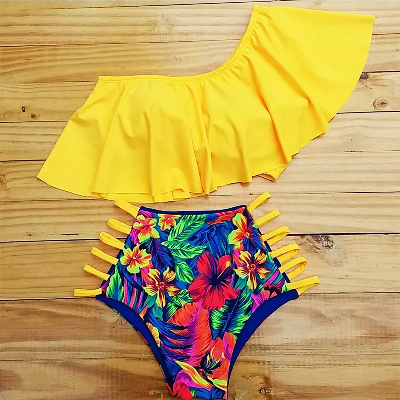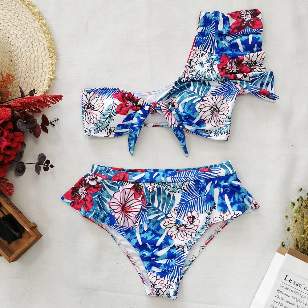 Женский комплект бикини пуш-ап Бразильское бикини Тройная оборка бикини на бретельках Купальник бандо бикини купальный костюм