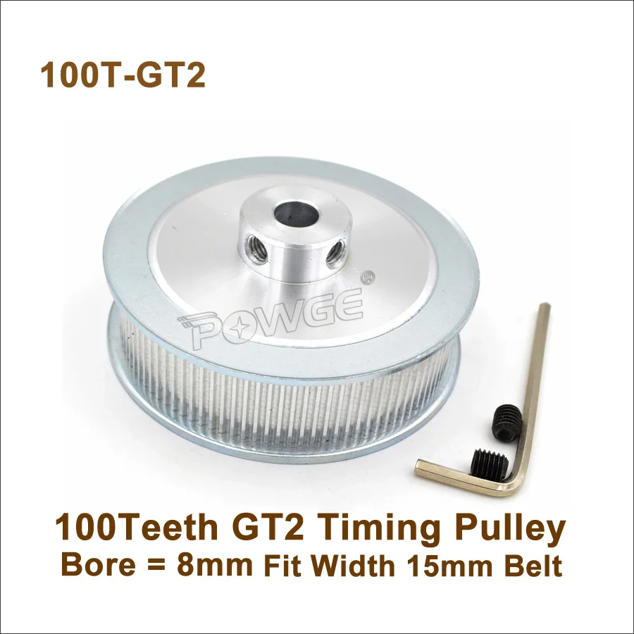 Зубчатый шкив POWGE 100 зубьев 2GT, отверстие 8 мм, подходящая Ширина 15 мм GT2, синхронный ремень 100 зубьев, зубчатый шкив GT2 100 T