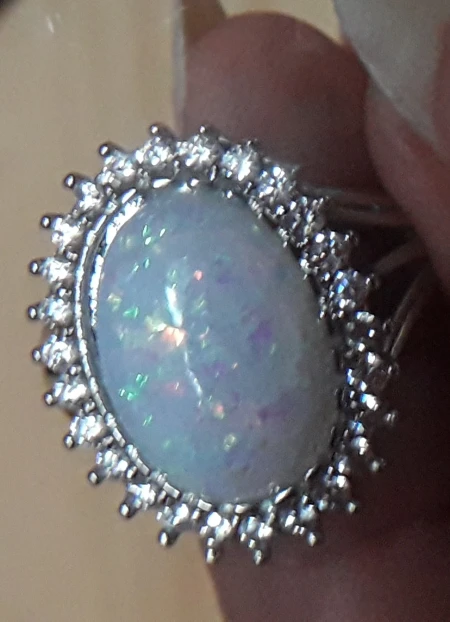 Кольцо женское из серебра 925 пробы с опалом и цирконием, размер 6-10
