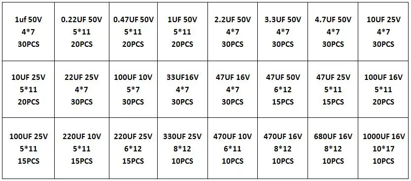 C'est de bons condensateurs électrolytiques en aluminium 16V-50V de fonctionnement et de valeurs 0.1uf à 1000uf.