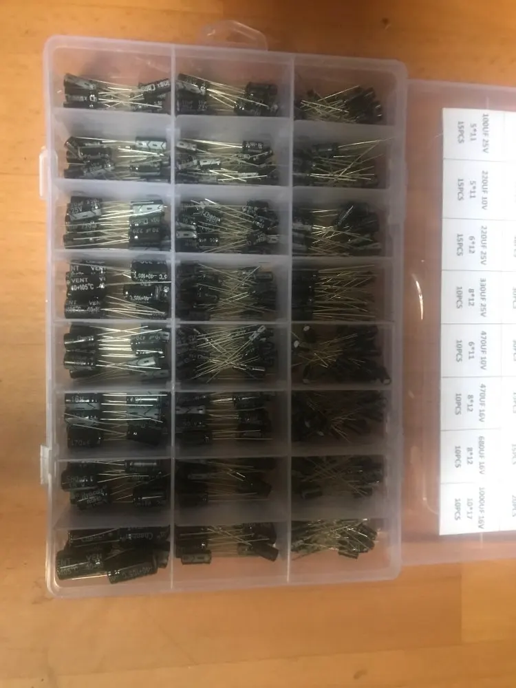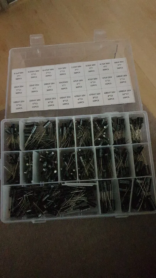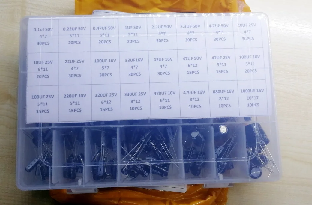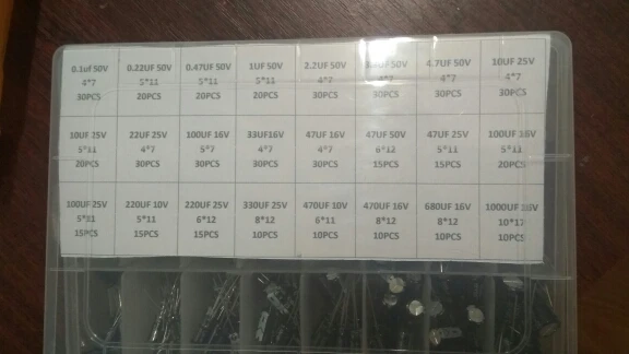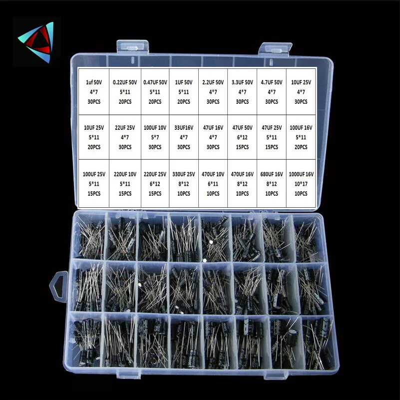 500Pcslot 0.1UF-1000UF 24Values Aluminum 16-50V Mix Electrolytic Capacitor Assorted Kit And Storage Box