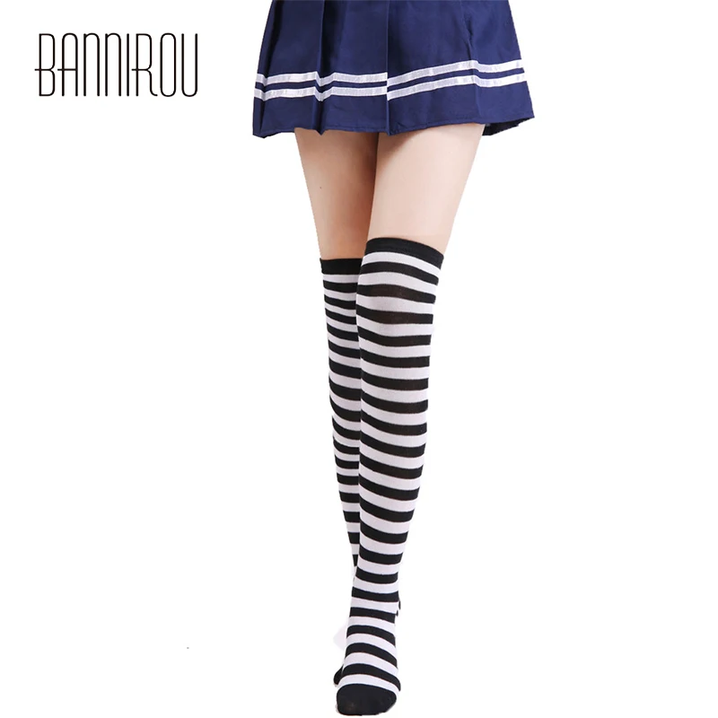 BANNIROU Лолита чулки девочки; Хлопок; Есть в наличии; Носки в полоску со гетры женские гольфы в Корейском стиле японский кавайные носки