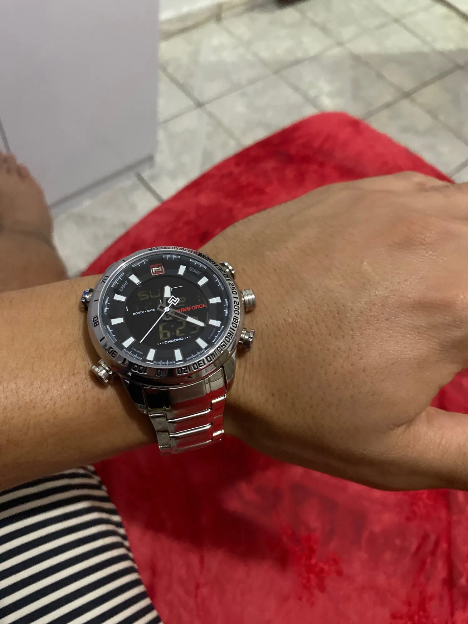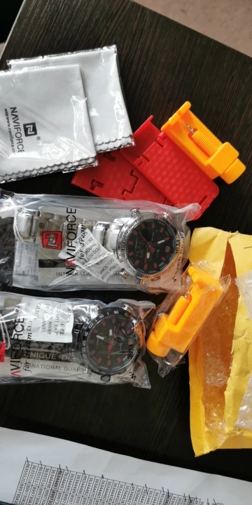 часы огонь. все как на картинке. доставка так себе. но качество просто супер, весят как будто полкило. с ним идёт приспособление для укорачивания браслета, какая-то карта naviforce, может скидочная и тканевая салфетка, видно вытирать часы.
