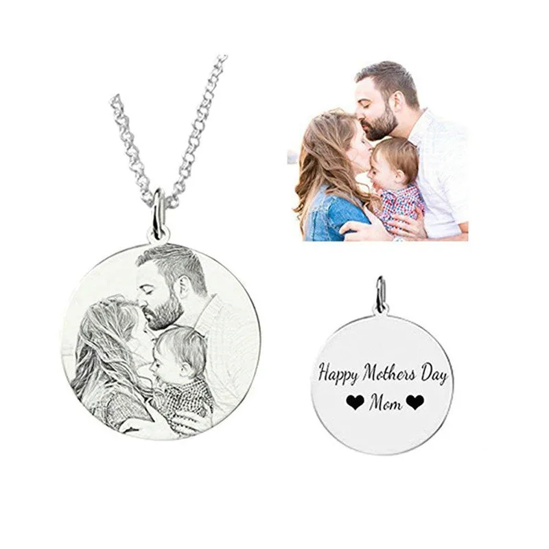 Персонализированный подарок, ожерелье из титановой стали, индивидуальное имя, фото, круглая подвеска, ожерелье, собака, дети, ID, бирки, индивидуальное ожерелье с фото
