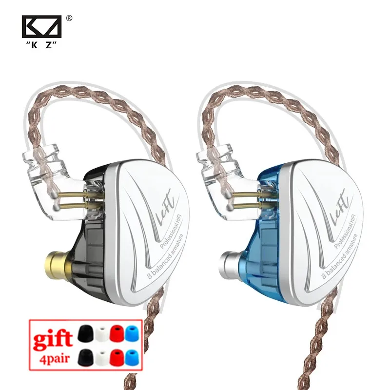Гарнитура KZ AS16, 8ba, гарнитура со сбалансированным якорем, высокое качество звука, монитор уровня шумоподавления, лихорадка, Hi-Fi наушники C16, BA10, AS10