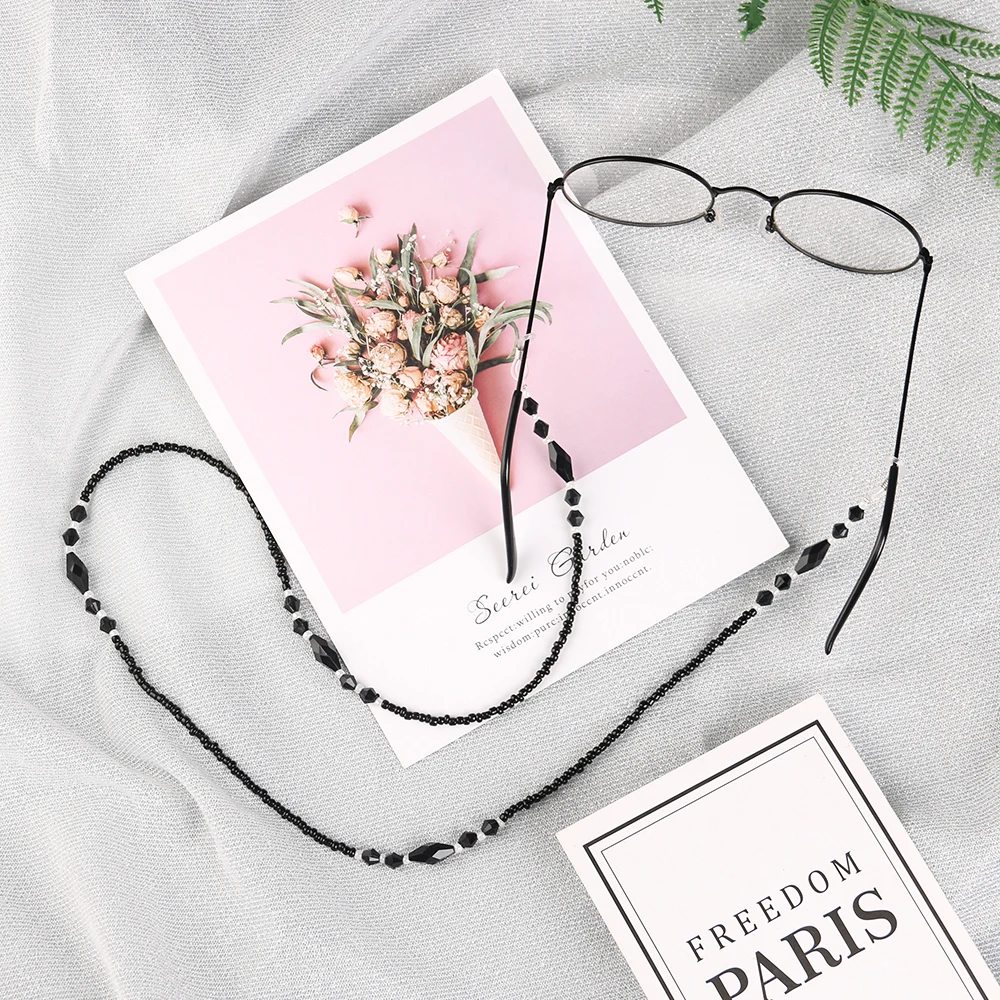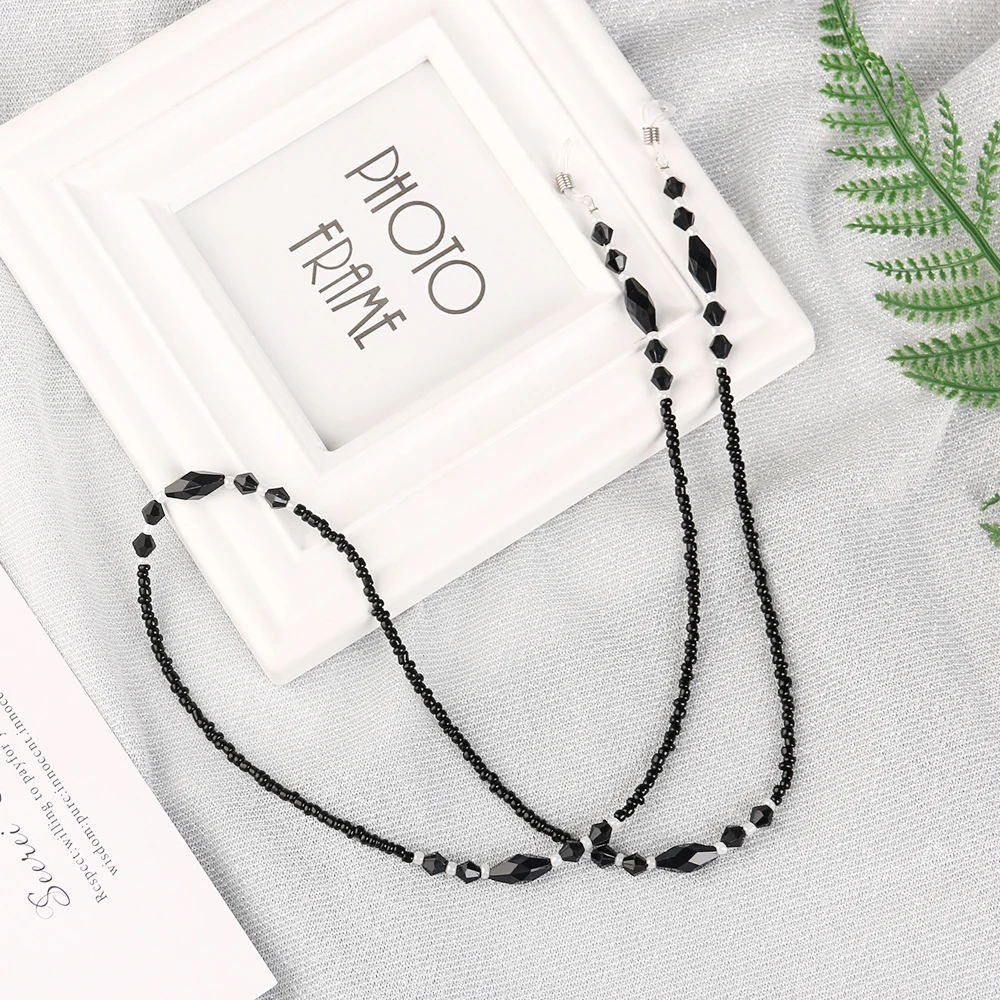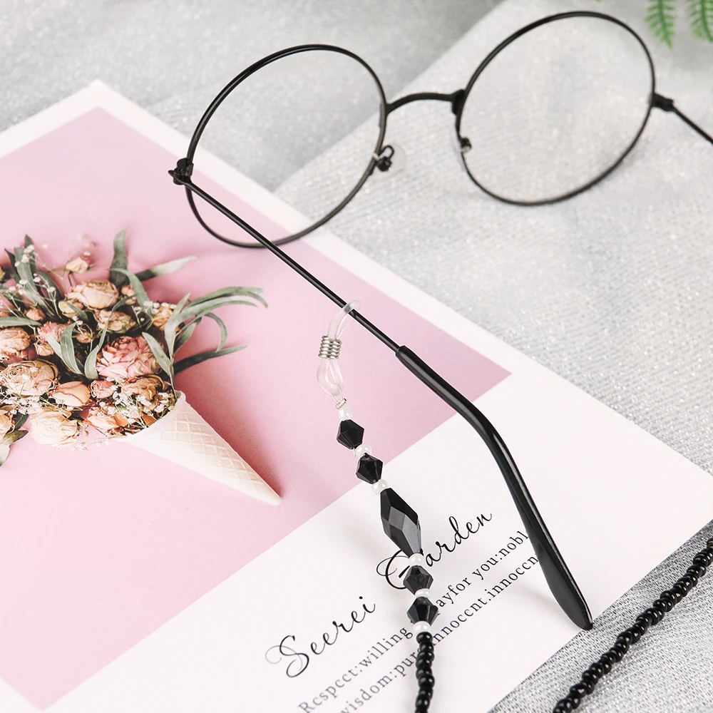 Цепочка для очков женская с черными акриловыми бусинами, нескользящая цепочка для очков, шнур для очков для чтения, ремешок на шею, 1 шт., 2020