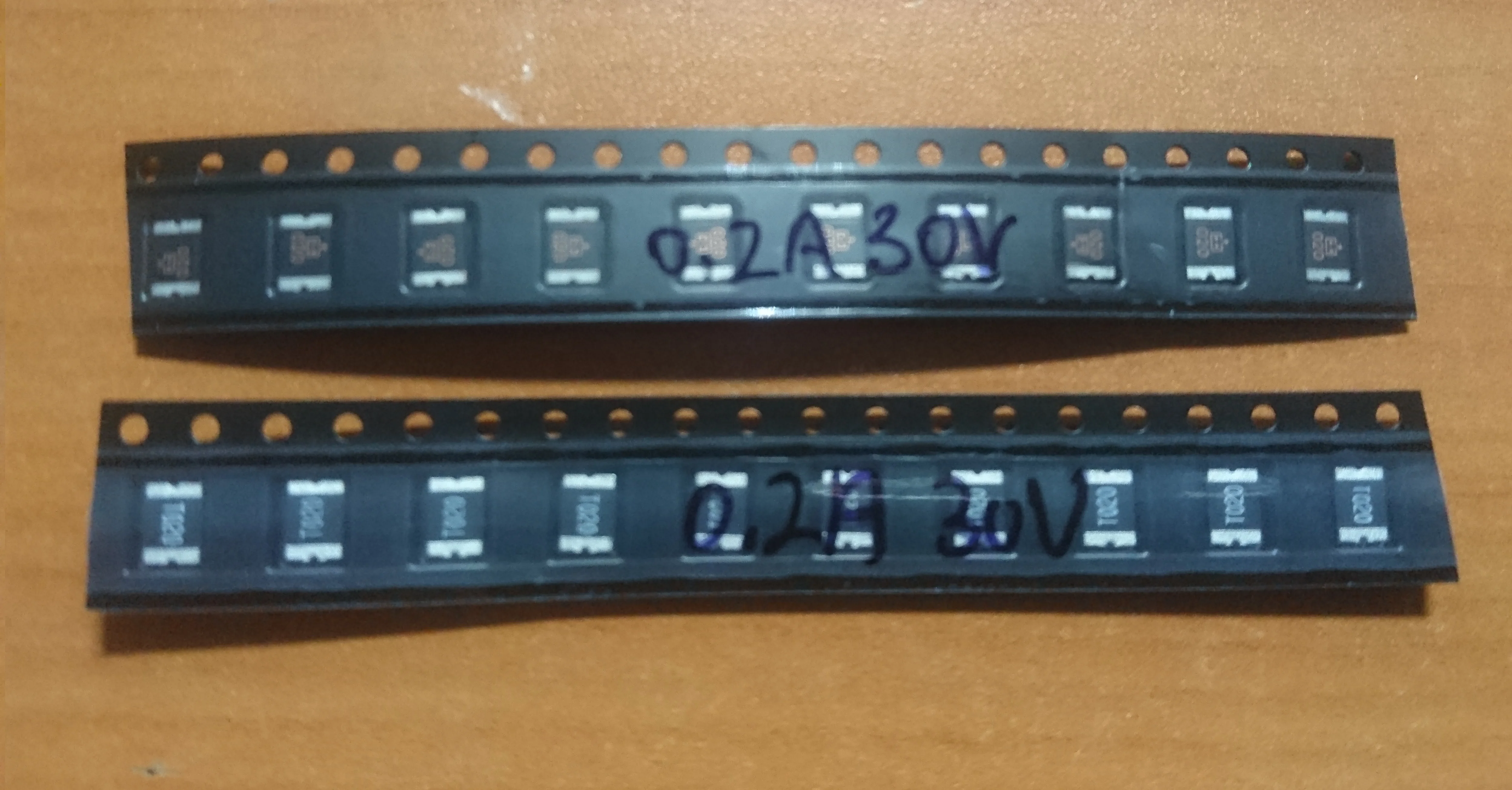 4 полоски по 10 штук, у 3 полосок одинаковая маркировка, 1 полоска из другой партии. Надпись маркером на всех полосках: 3 A 6 V. Про максимальное рабочее напряжение сведений при заказе не было, это может быть критично. В работе пока не проверились и не тестировались. Дополню отзыв после получения сведений по наработке на отказ.
