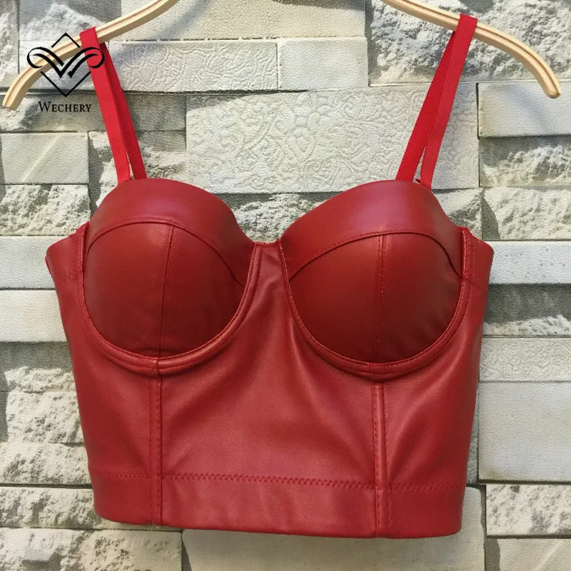 Кроп-Топ женский кожаный, без рукавов, в готическом стиле