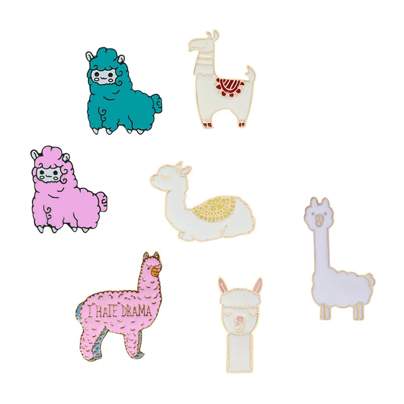 Горячее предложениеМилая брошь из овечки и альпаки для женщин, ювелирное изделие, розовый, белый, эмаль, булавка для одежды, сумка, аксессуар для мужчин, мультяшное животное, металлический значок, детские подарочные аксессуарыПодарокПрямая поставка
