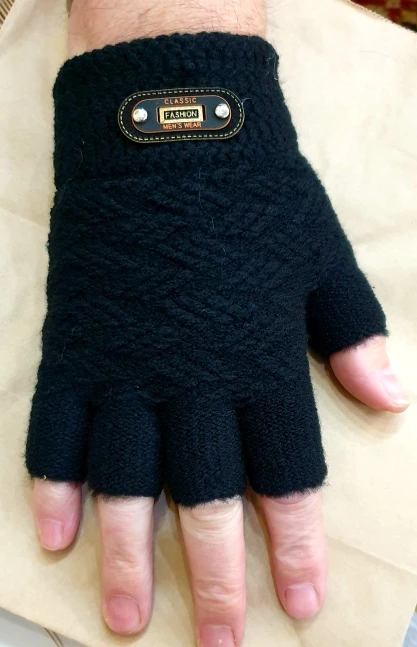 Перчатки мужские, зимние, вязаные, жаккардовые, с полупальцами, C2