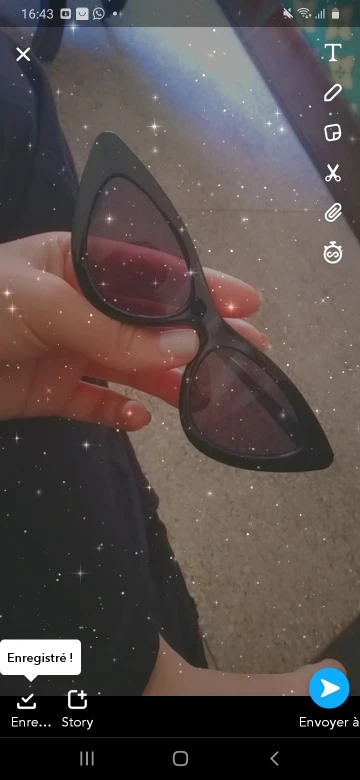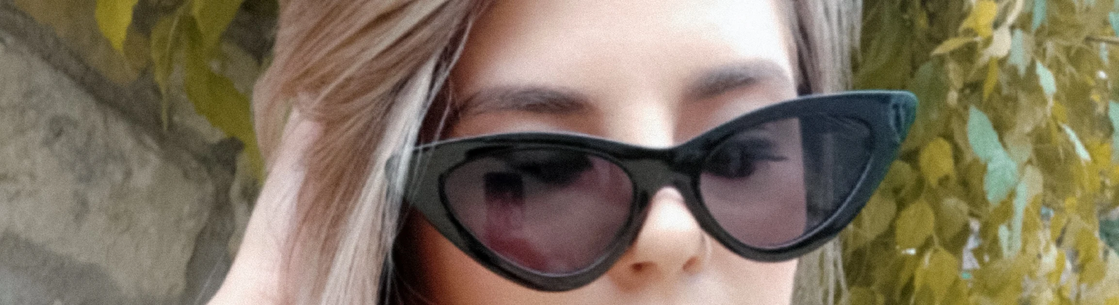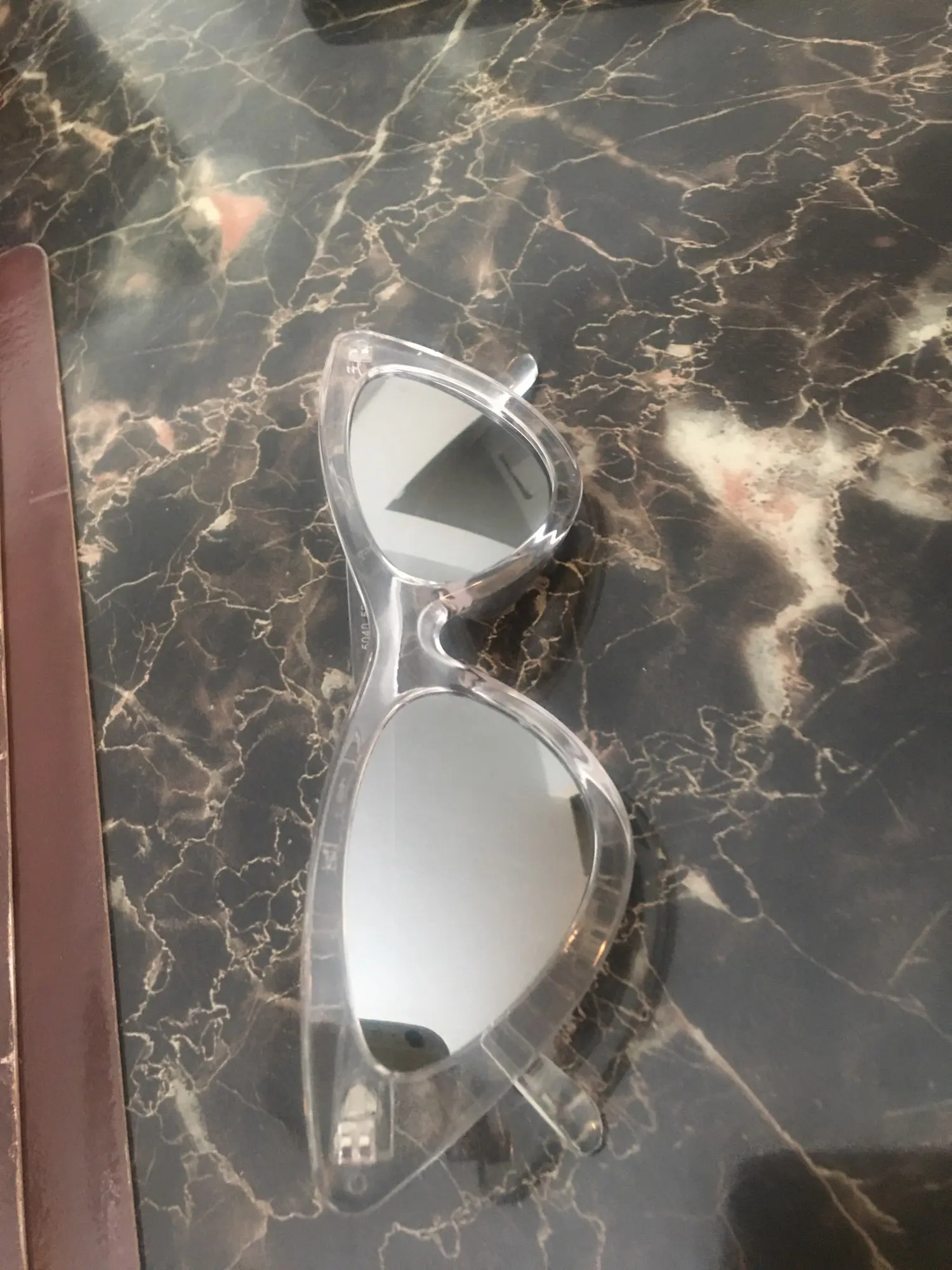 очки стильные, на фиолетовых один цвет (нет затемнения), выглядит классно, спасибо за внимание ♡♡