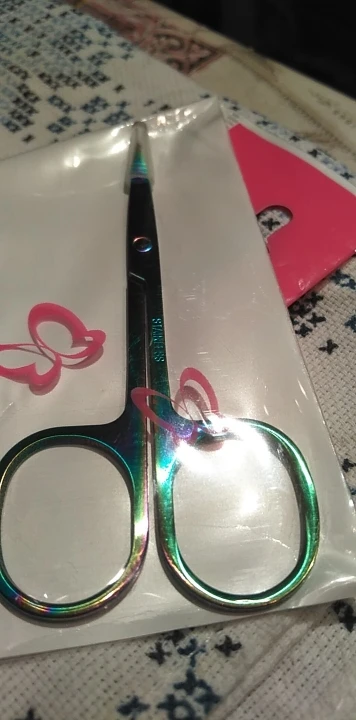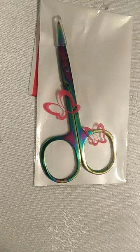 Ножницы для бровей, цветные, хамелеоновые, с изогнутой головкой