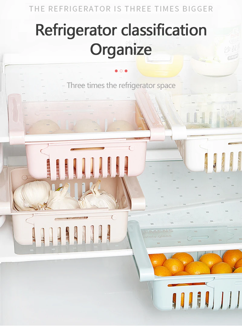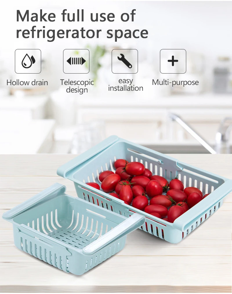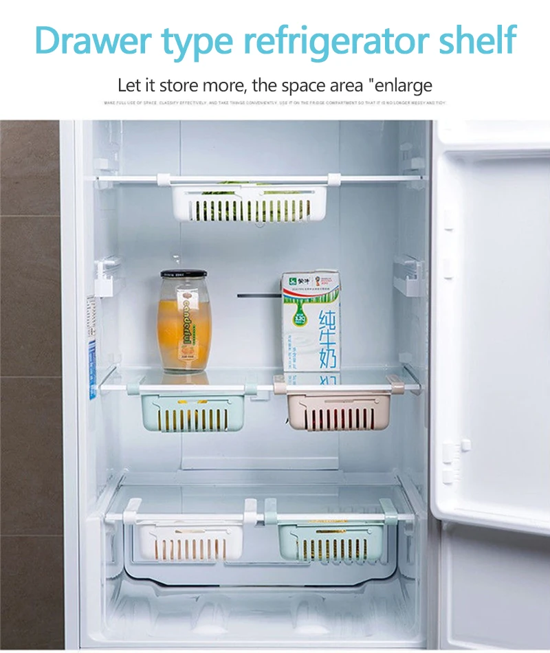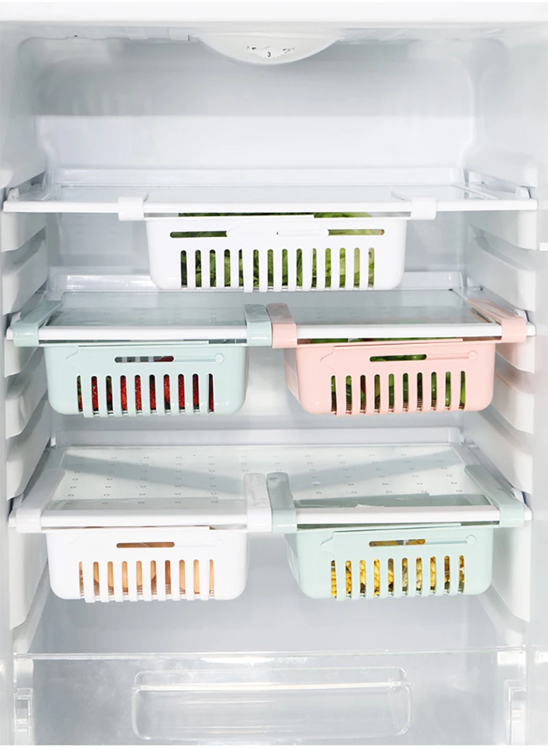 Регулируемая растягивающаяся корзина на органайзер для холодильника ящиков, для холодильника, 1 шт.
