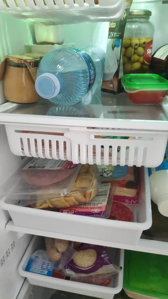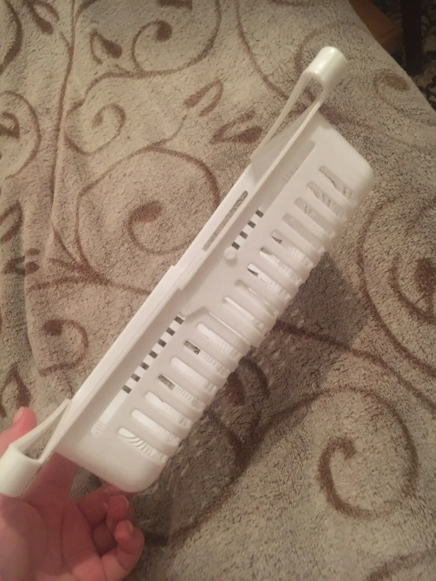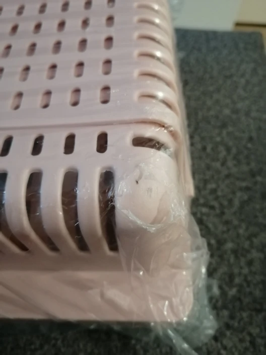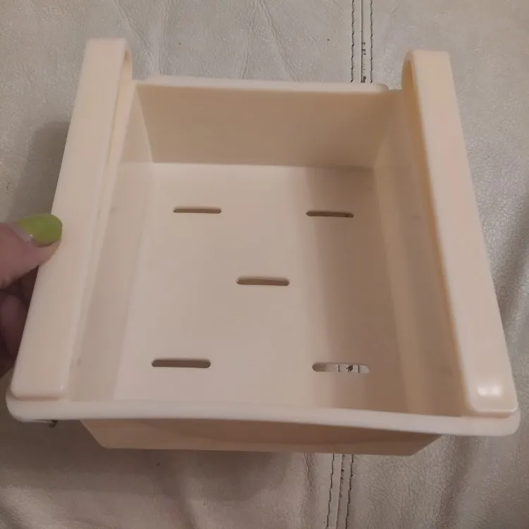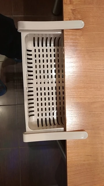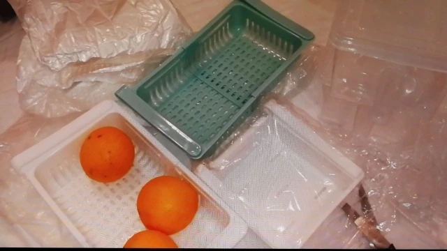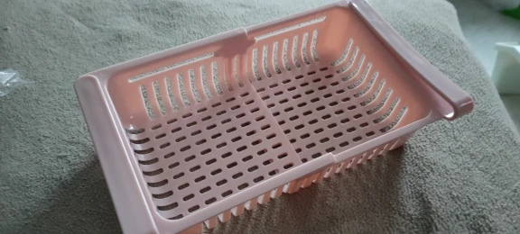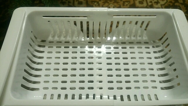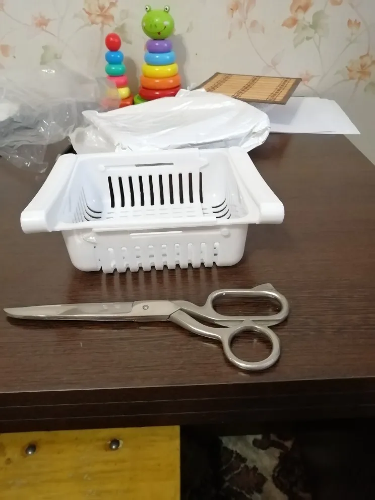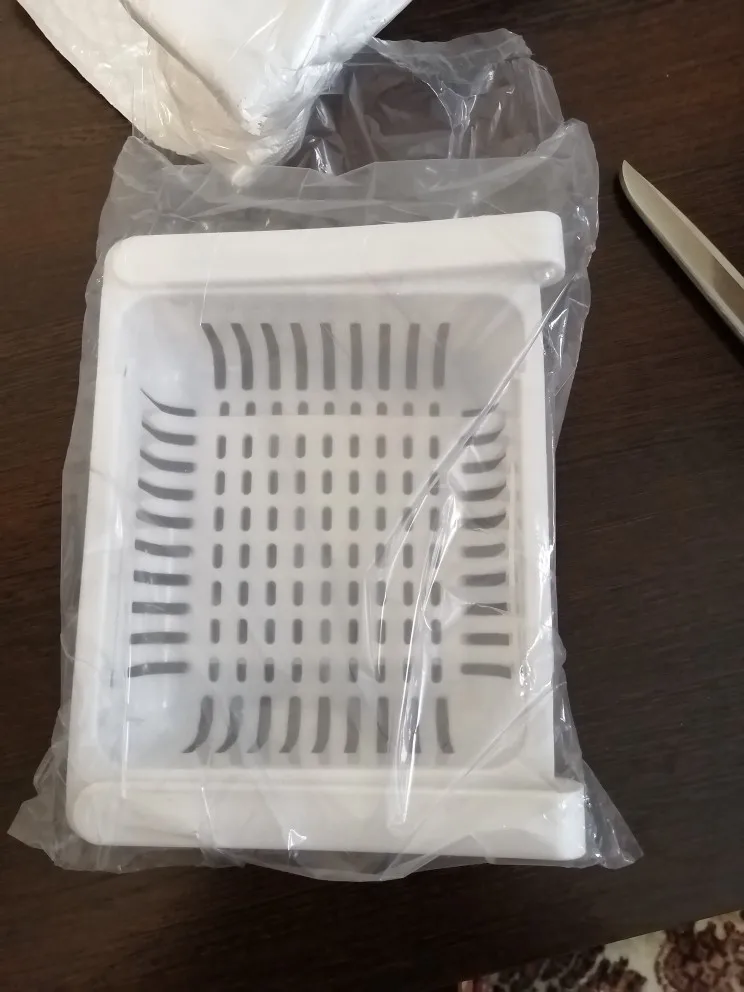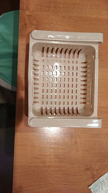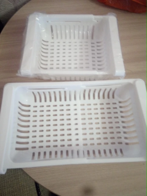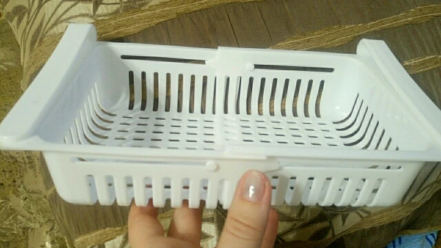 Посылка до офиса Билайн в Мск долетела за 18 дней в сборе ещё с 3 заказами. Первое, что бросилось в глаза - что цвет даже близко не такой насыщенный, как на картинке. Контейнер бледно-бледно розовый, при тусклом свете вначале даже показалось, что белый. За это снимаю звезду. Пластик достаточно твёрдый, хоть в ряде мест были крупные зазубрины, но не острые, можно аккуратно подпилить и проблем нет. На холодильнике держится надёжно, хотя если что-то положить, то, чтобы достать - не вариант, как ящик выдвигать наполовину, приходится снимать и одевать на полку холодильника целиком всю конструкцию, иначе сорвётся. По размеру не оч соотнесла, что контейнер не раздвигается и оч маленький как в длину, так и в глубину. Самое удачное пока применение, которое ему нашла - это под запасную пачку масла, либо под мелкие фрукты и овощи. Короче, если брать подобные товары, то только раздвижной вариант.