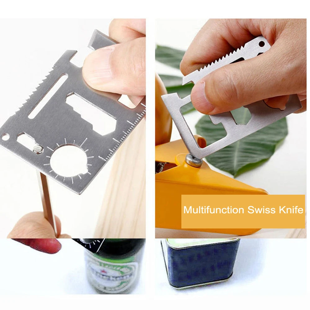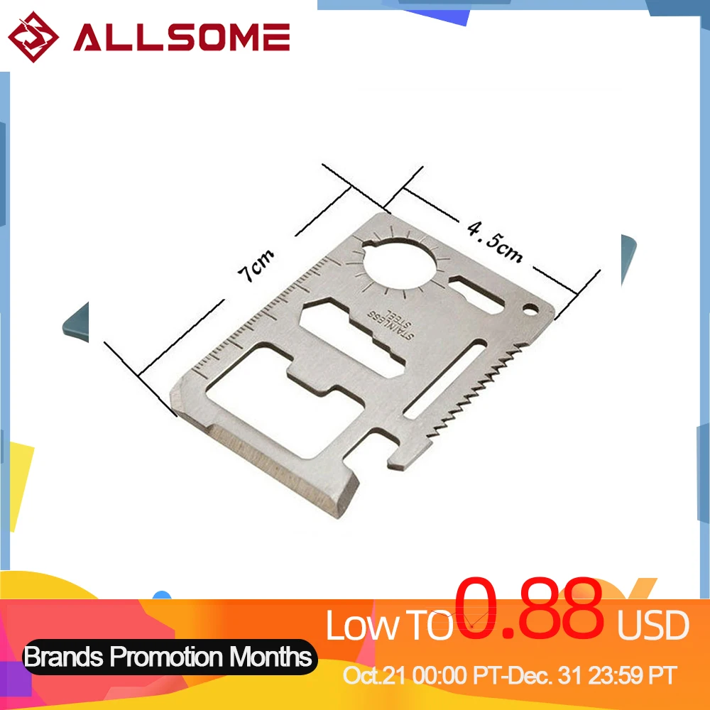 Многофункциональный швейцарский нож ALLSOME, 11 в 1, серебристый Мультитул в стиле милитари, для выживания, охоты, кемпинга, кредитных карт