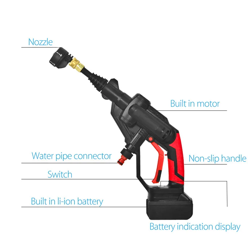 Многофункциональный беспроводной мойщик высокого давления, пистолеты с водяным шлангом и насосом, 21 в 2,0 Ач
