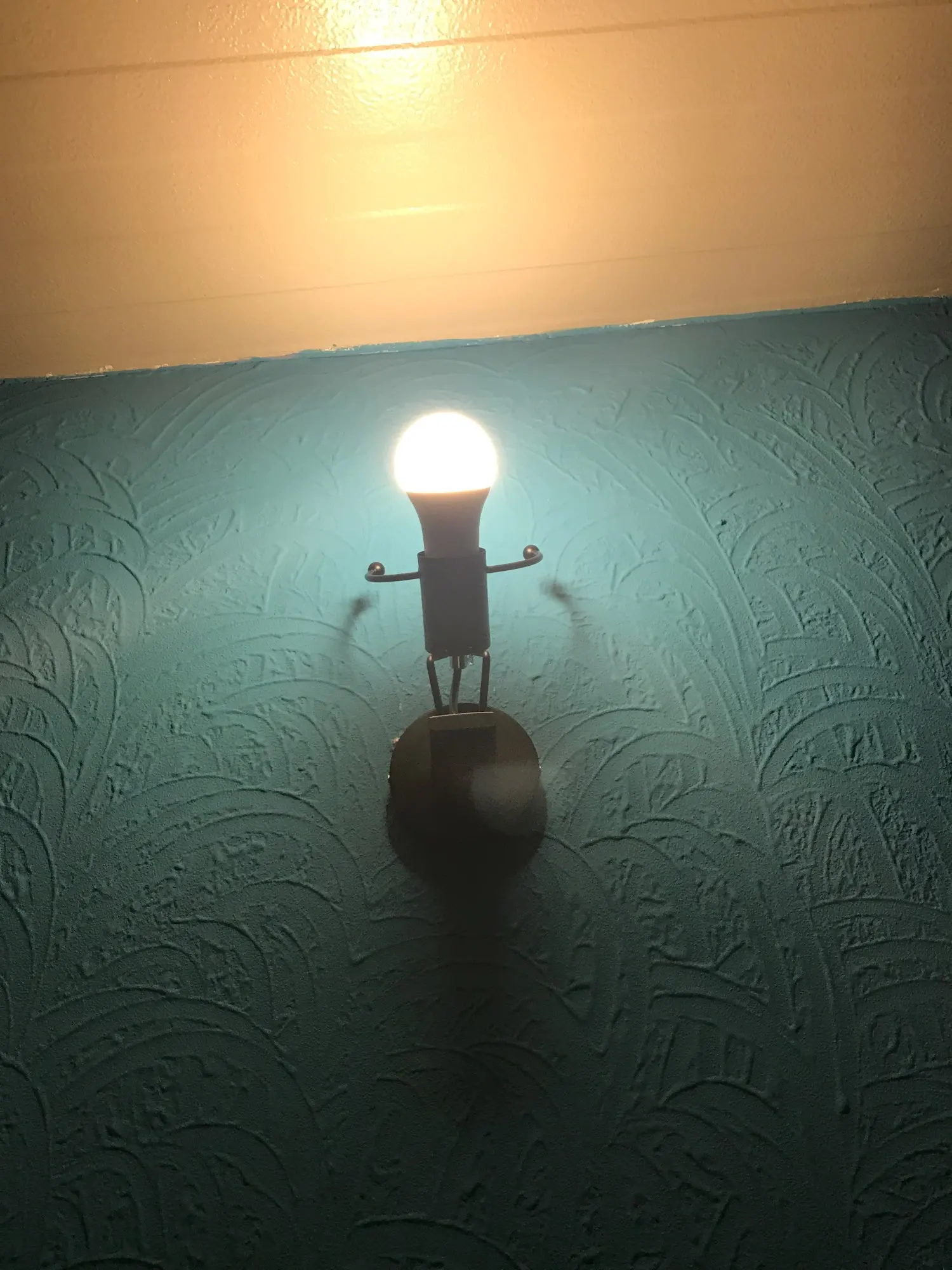 это очень красивый светильник, качественный материал, вроде какое-то желез. Смотрится очень хорошо,купили для мальчиков в комнату,но вставим самые тусклые лампочки,что бы были как ночник. Один недостаток..... нет выключателя! Но купим отдельно и электрик подключит,Это очень не удобно,но ничего не поделаешь. Продавец мог бы и с выключателем продавать. пришло очень быстро, где-то за 3 недели.