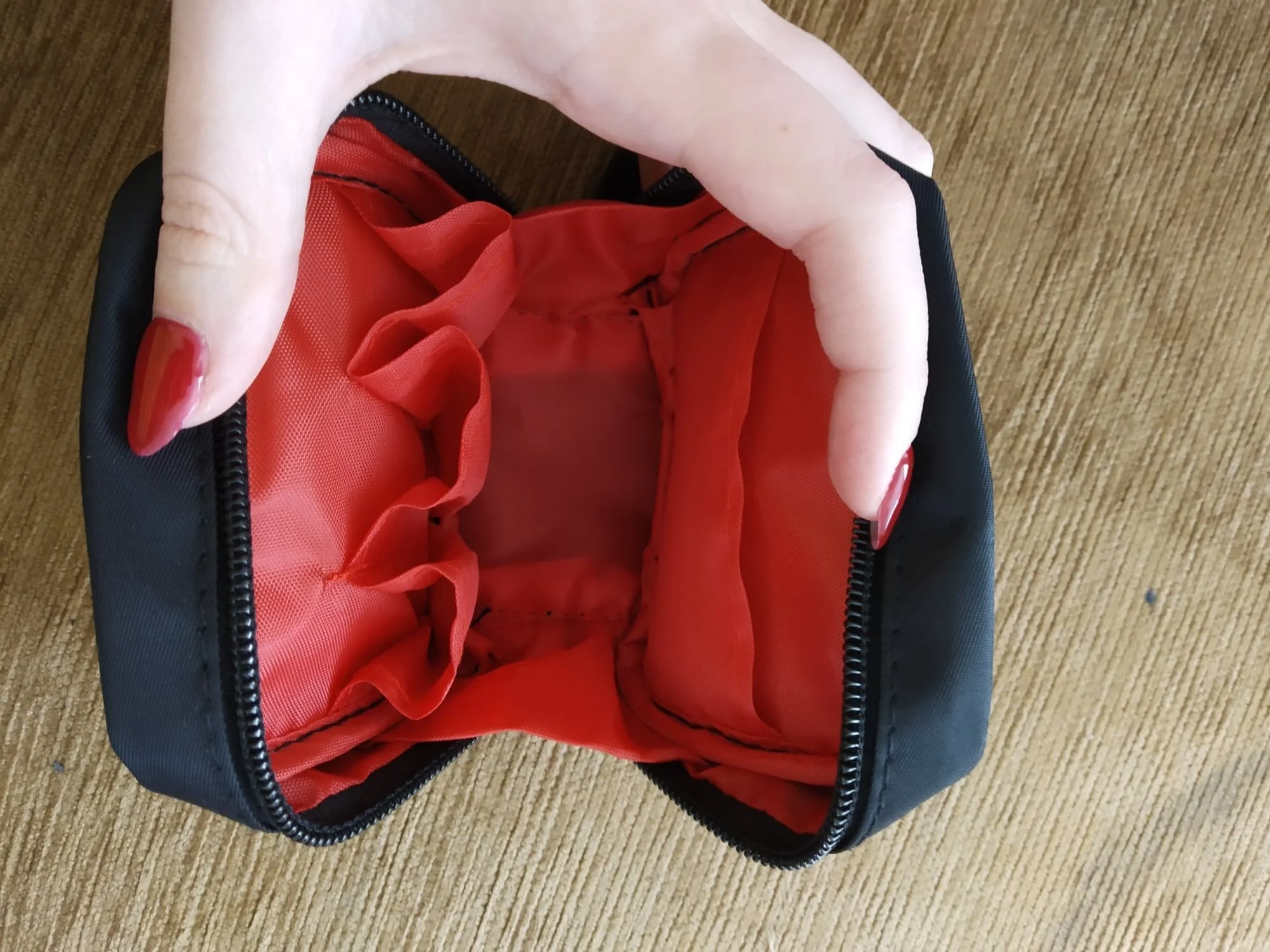 Это немного меньше, чем я думал. Но это очень хорошо. У него есть разделители внутри, и молния идет очень хорошо. Цвет и печать красивы