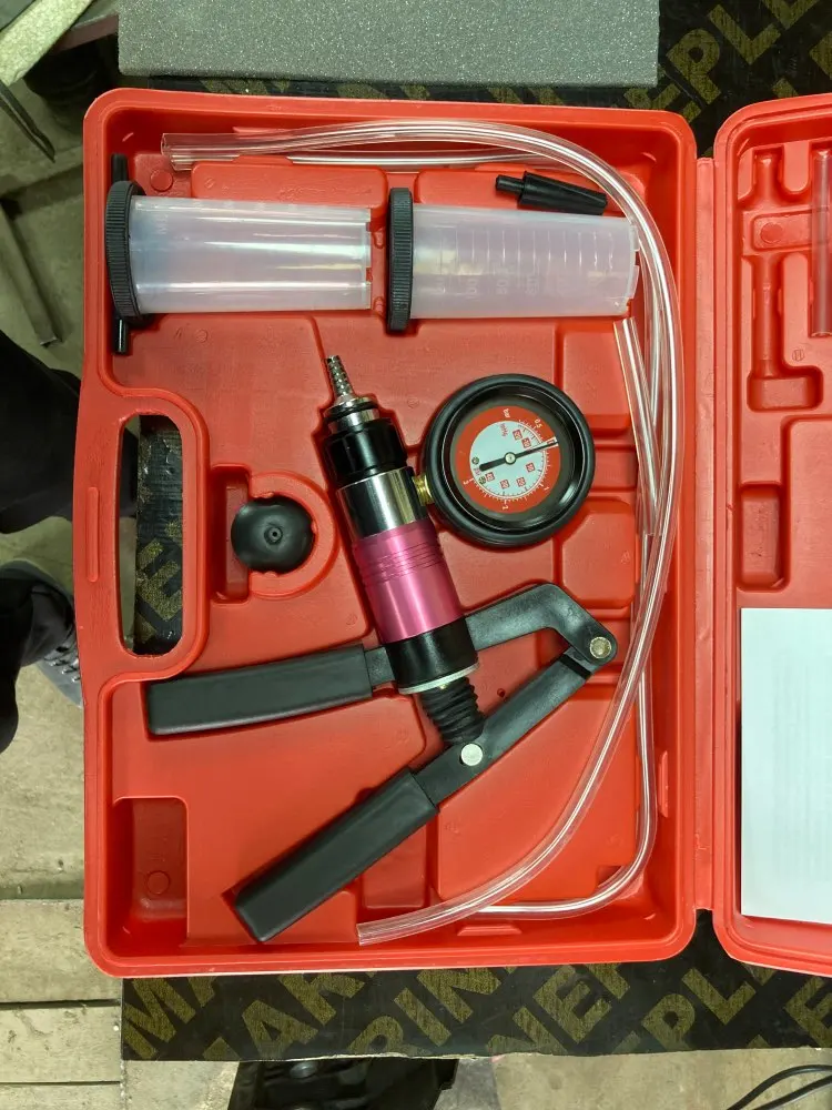 Заказ прибыл в установленные сроки. Стрелка на нуле, все работает. Для не профессионального применения вполне. Пузыри воздуха будут идти при прокачке тормозов, подсос воздуха из под штуцер прокачки снаружи неизбежен, основная идея выкачать старую жидкость одному. Ну даже если и останется немного воздуха, не страшно, хуже старая тормозуха в системе. Продавцу 5 звёзд.