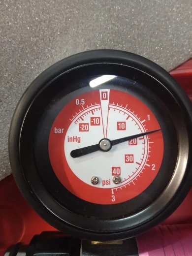 Всё комплектно, стрелка на "0", но вот разряжение еле вытягивает до -0,5 бар. В нагнетании всё гораздо лучше, можно "стрелку положить")