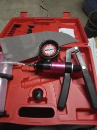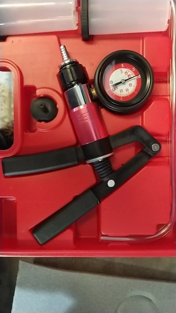 Неоднозначное устройство да и дороговато, необходимо было прокачать тормозную систему но одному это делать не удобно с помощью этого устройства переключенного на вакуум работы проводятся легко и спокойно. В будущем планируют модернизировать накопитель на стеклянные ёмкости большего объёма тогда это будет работать как я хотел.