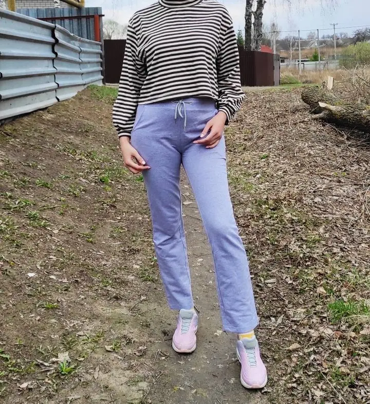 Посылка приехала очень быстро, 10 дней до Свердловской области. Штаны хорошо пошиты, ткань достаточно плотная, заказывала на весну. Размер в размер. На мне в обтяжку, но я это знала, гулять с собакой нормально. Длина хорошая, мои параметры 90- 120, рост 166.